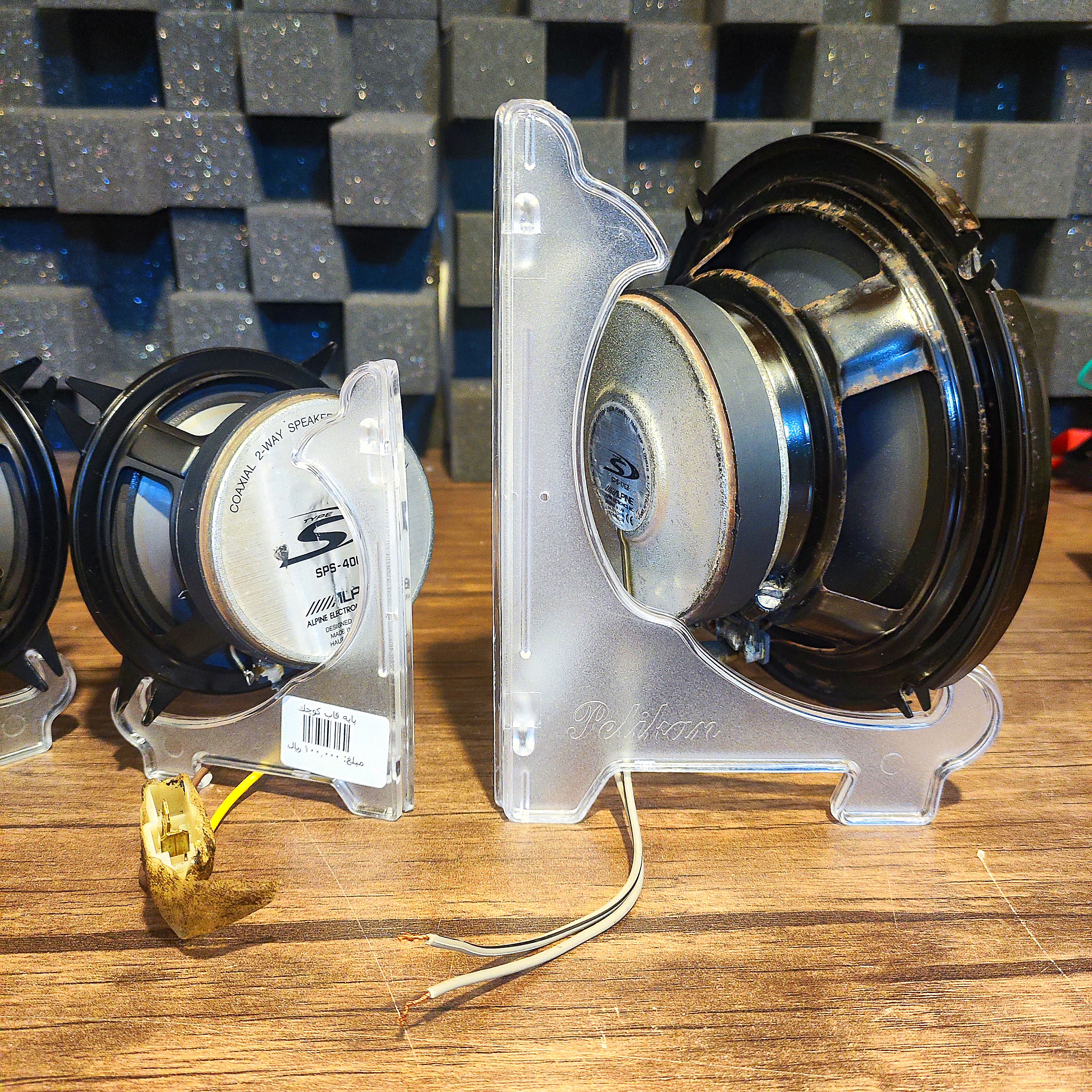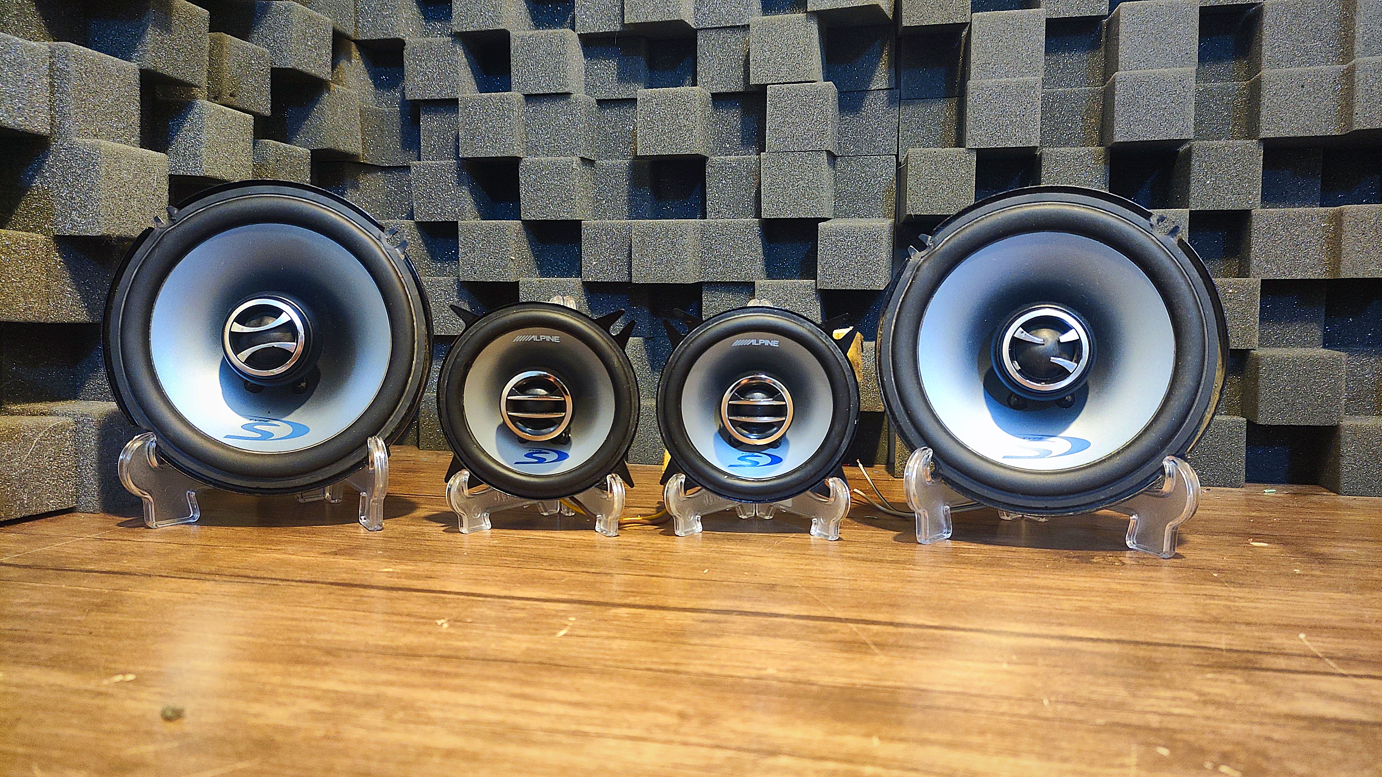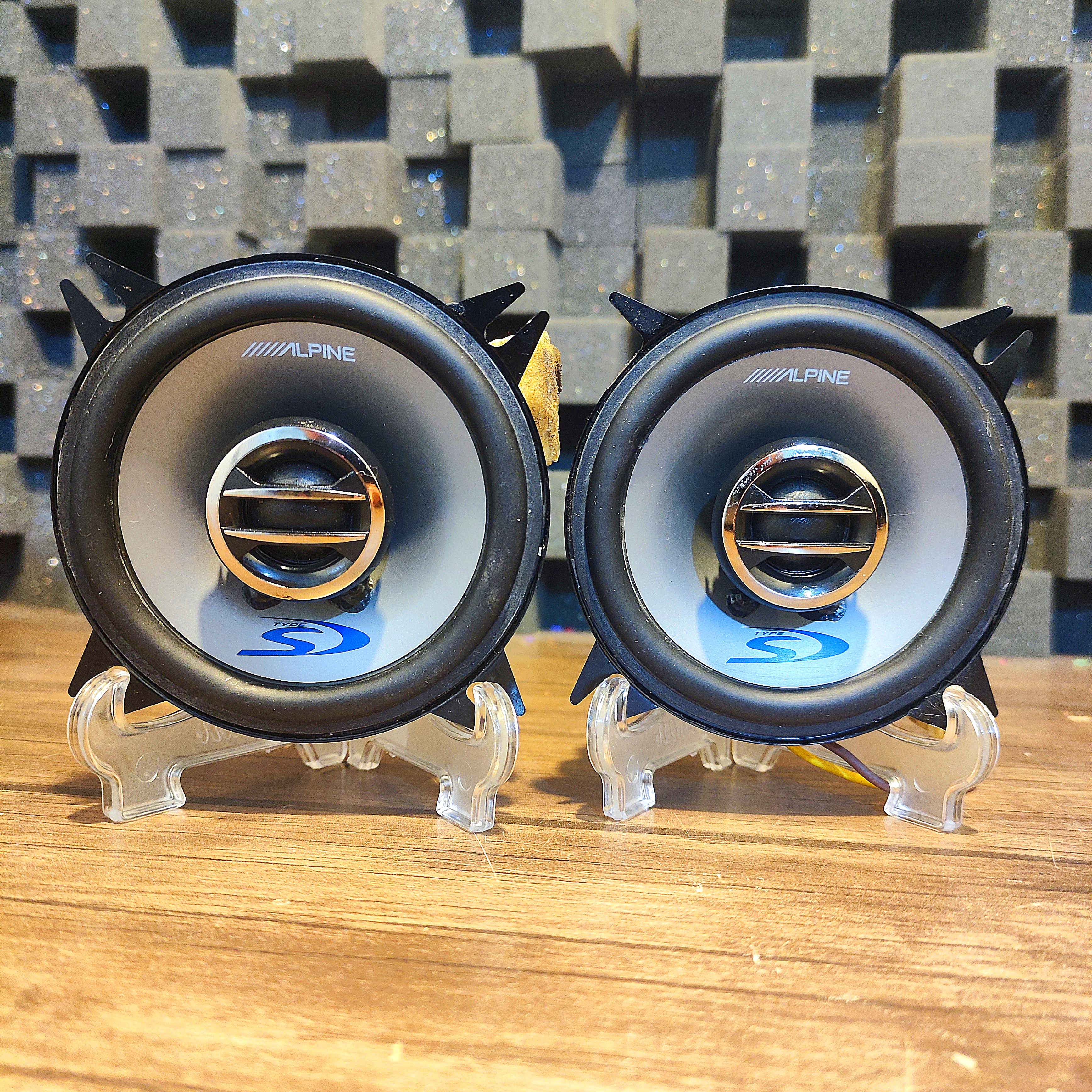 استوک (کارکرده)- 2جفت بلندگو گرد حرفه ای آلپاین- سایز 17 سانت و سایز 10 سانت- تایپS، ساپورت امپلیفایر، مناسب برای نصب بر روی 206، سمند، پراید ، تیبا و... به صورت فابریک