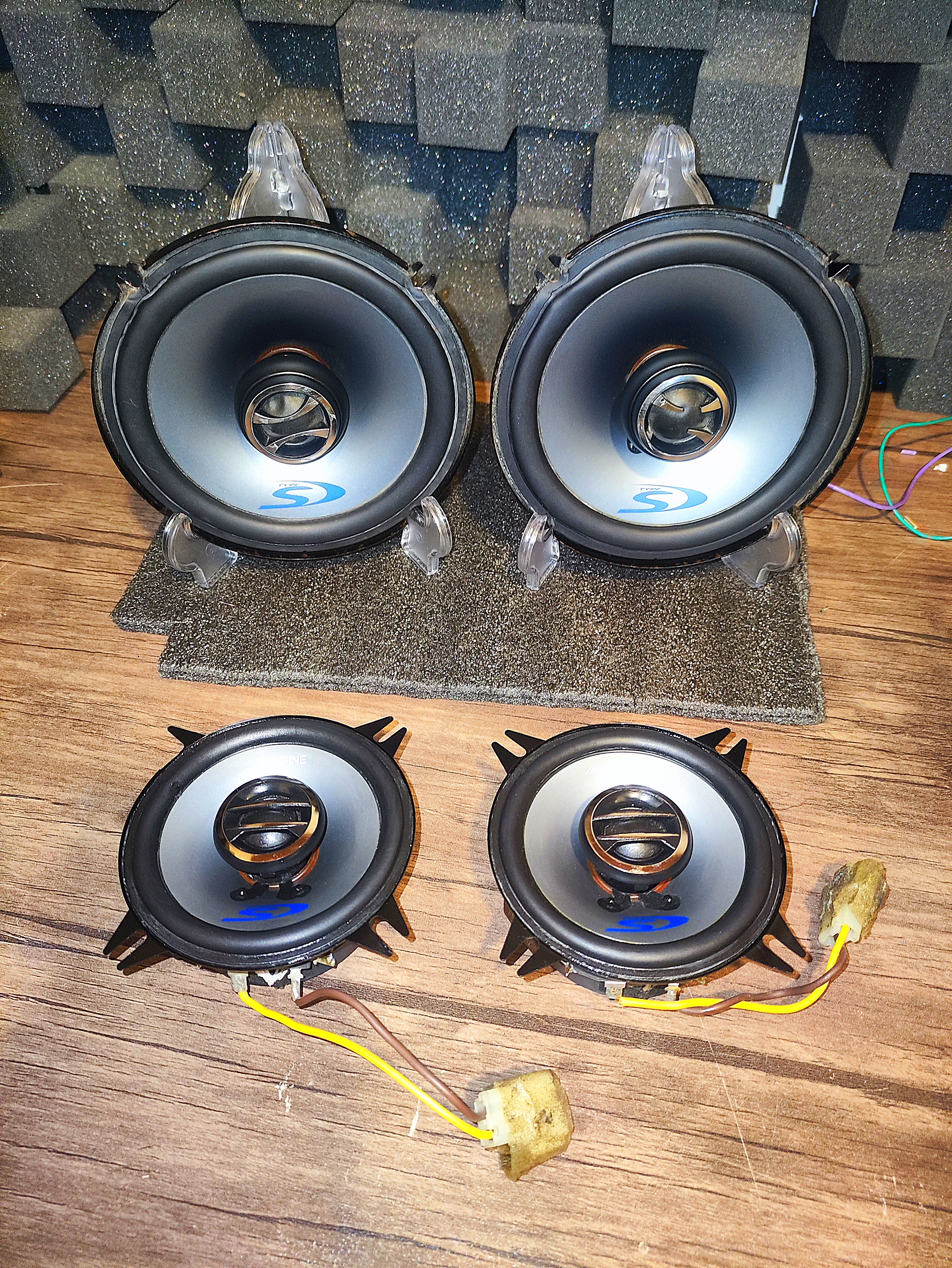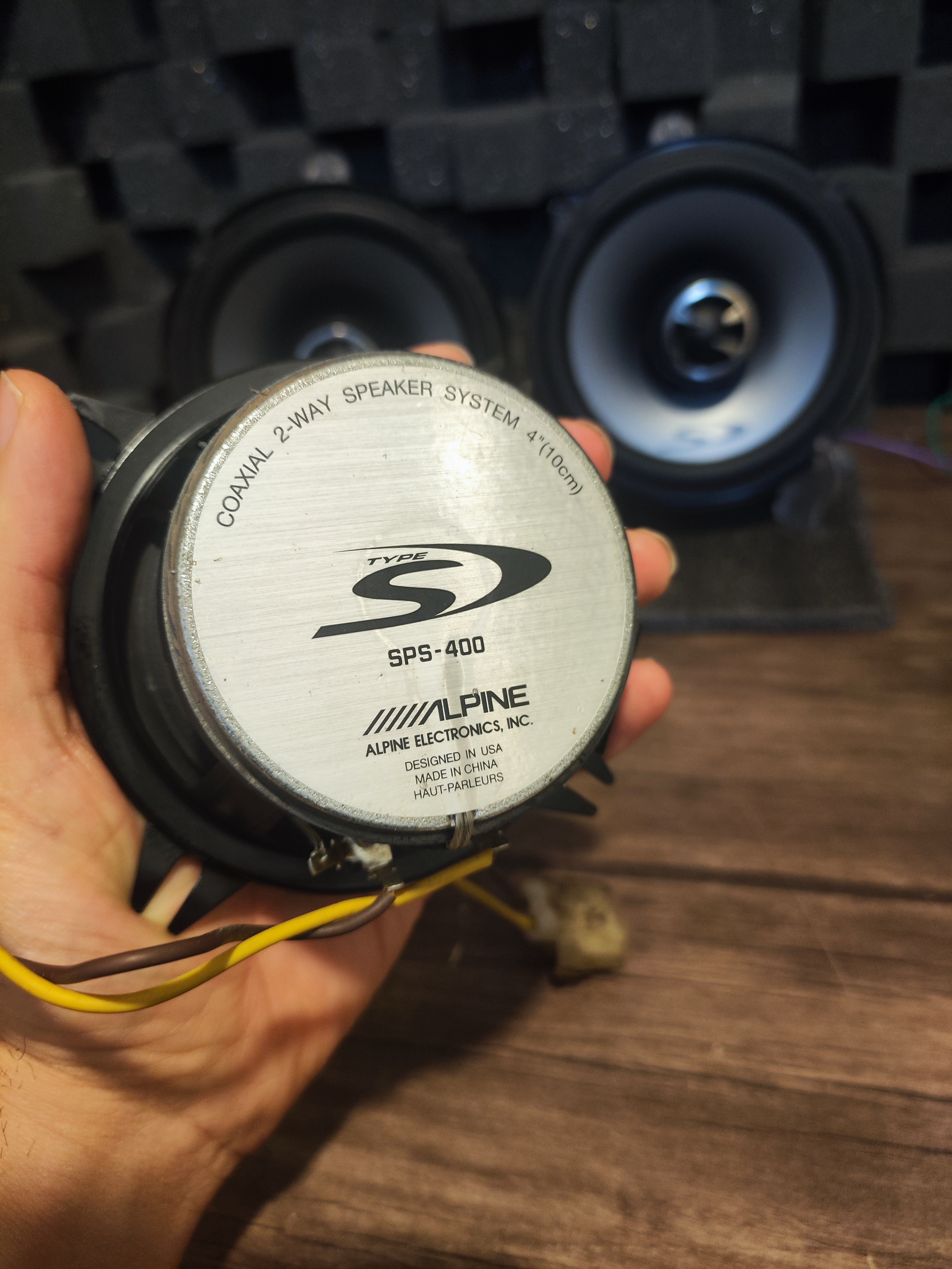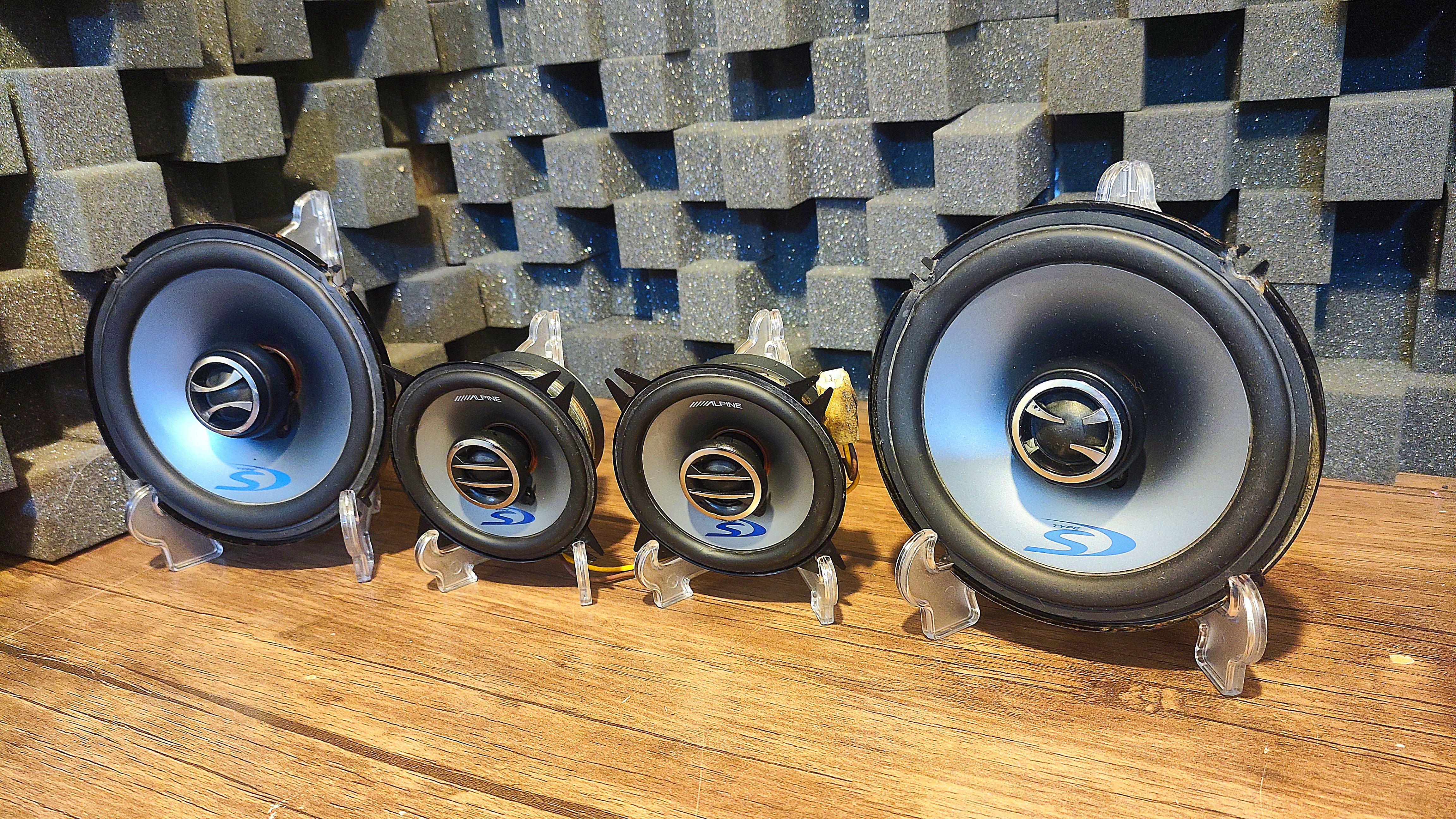 استوک (کارکرده)- 2جفت بلندگو گرد حرفه ای آلپاین- سایز 17 سانت و سایز 10 سانت- تایپS، ساپورت امپلیفایر، مناسب برای نصب بر روی 206، سمند، پراید ، تیبا و... به صورت فابریک