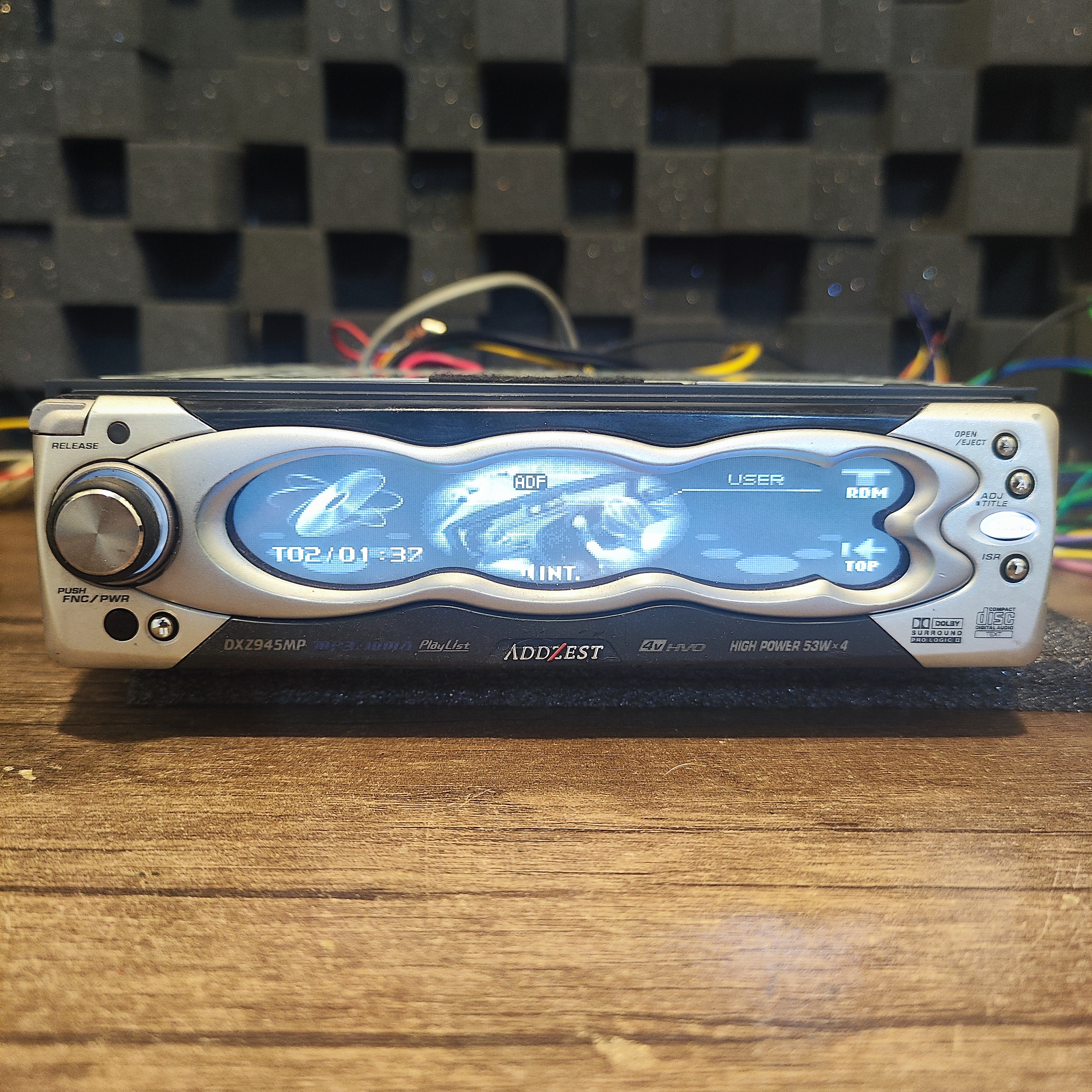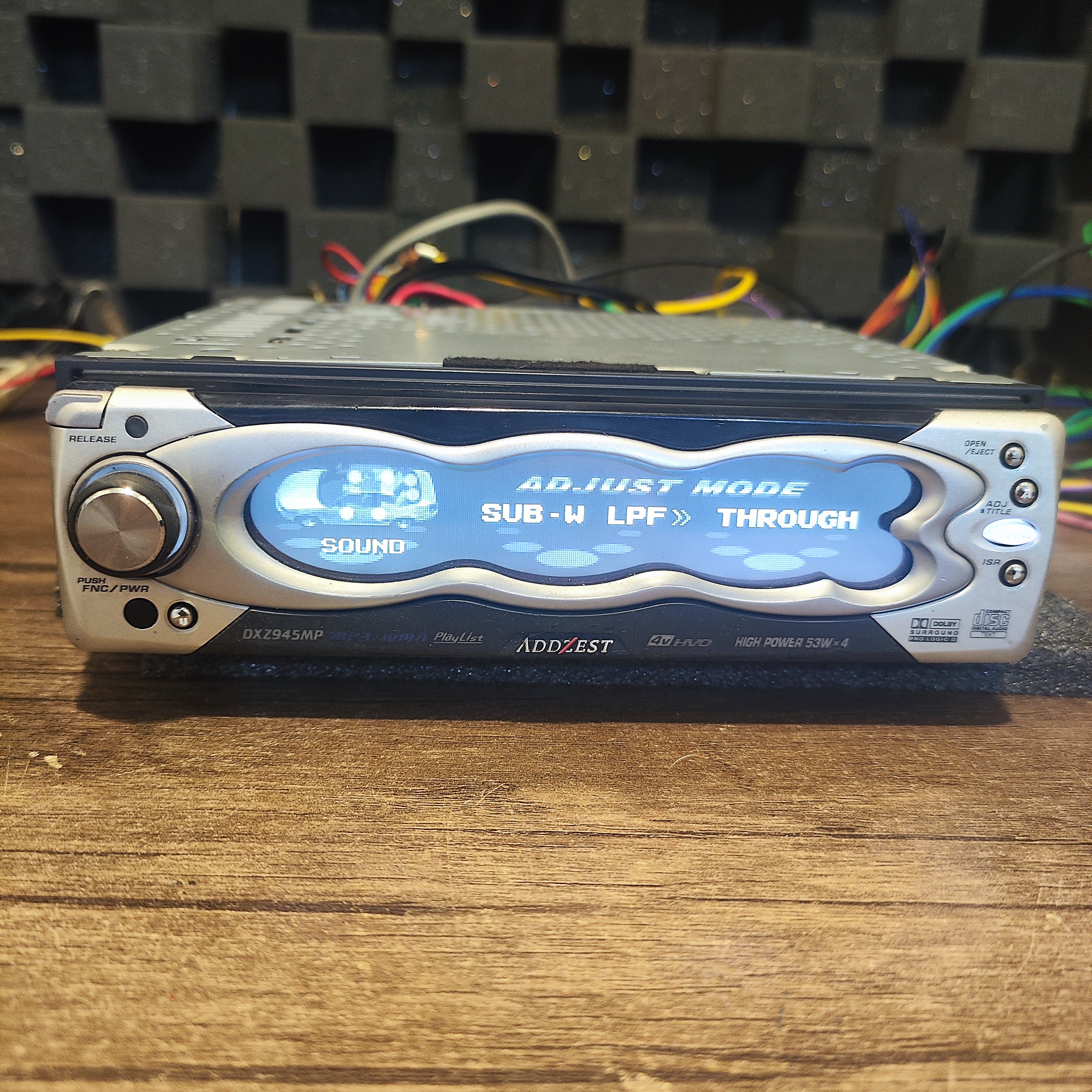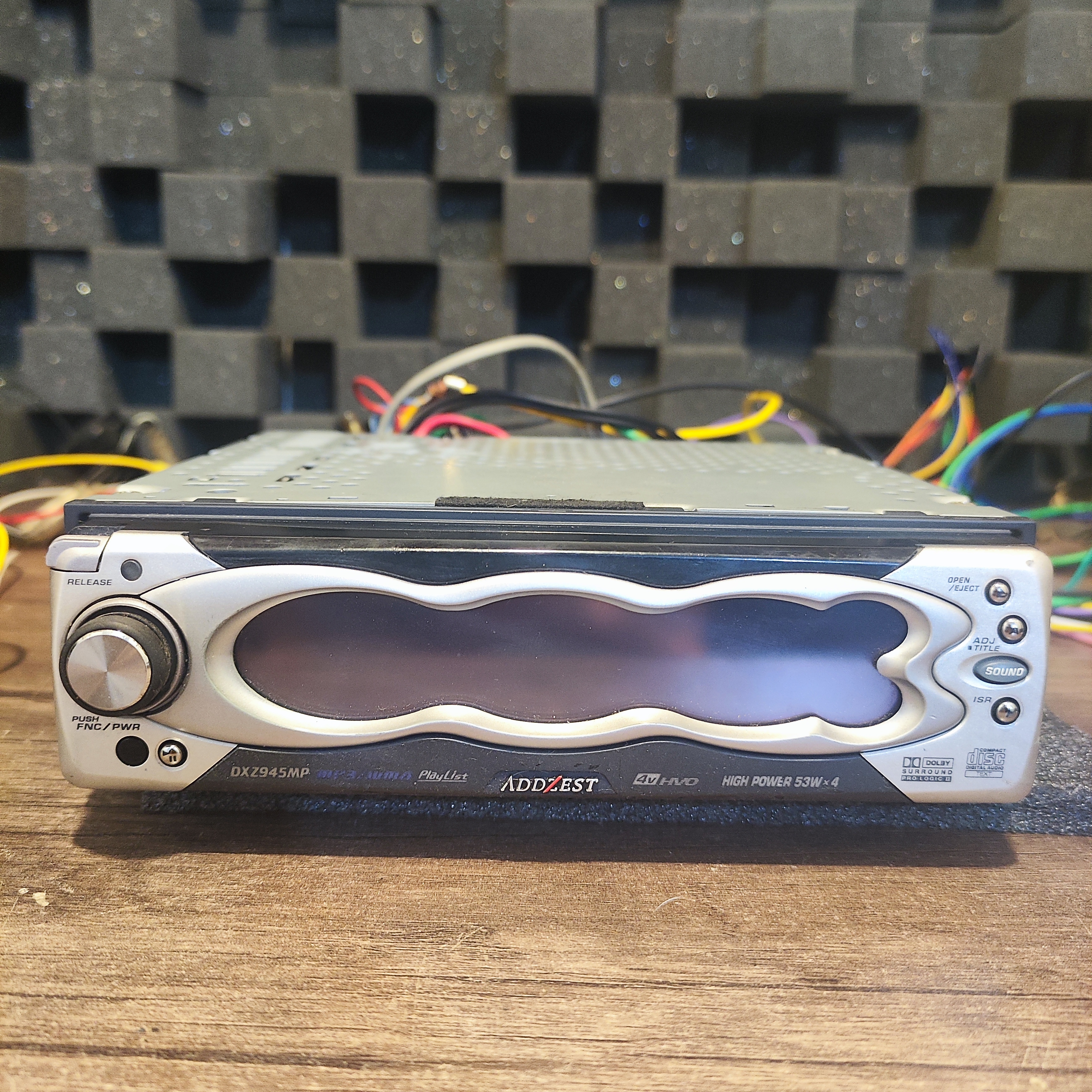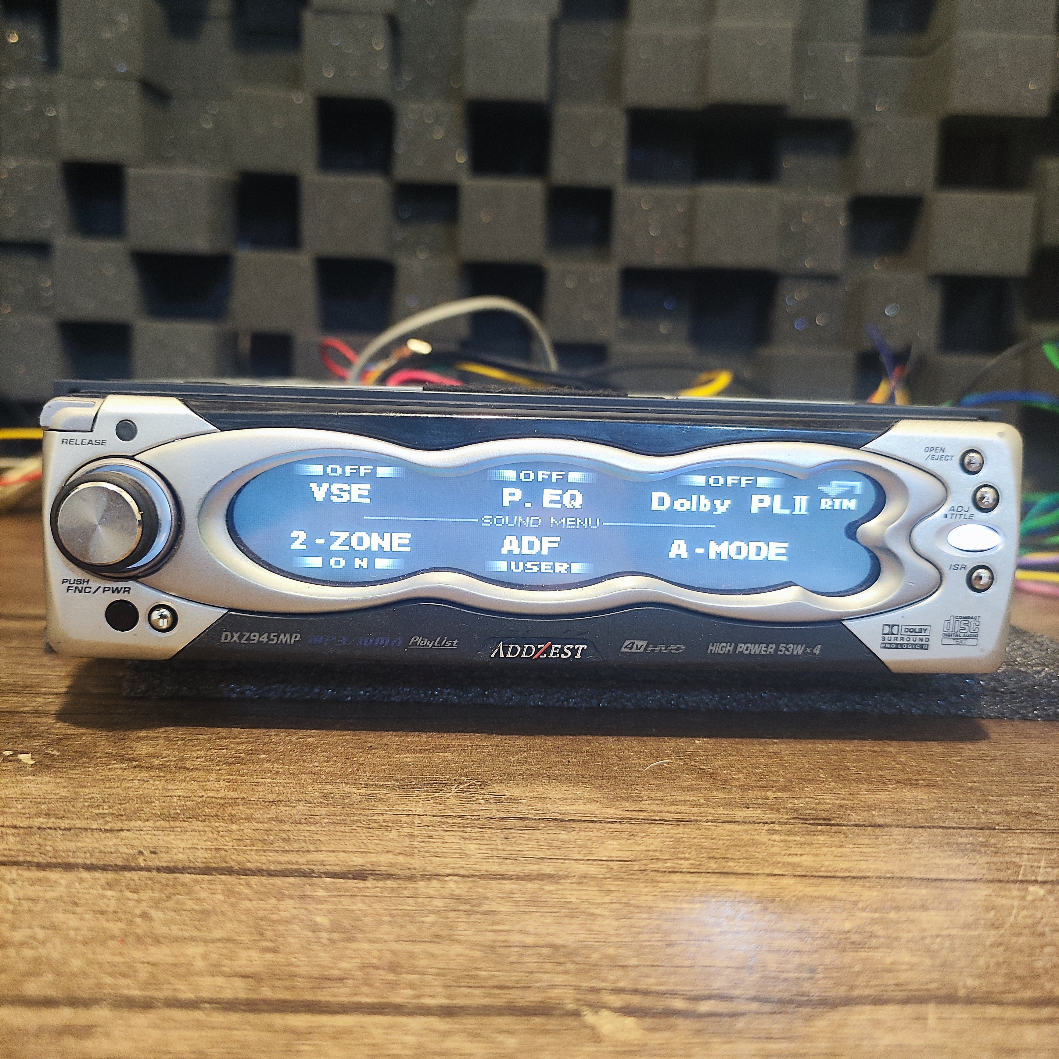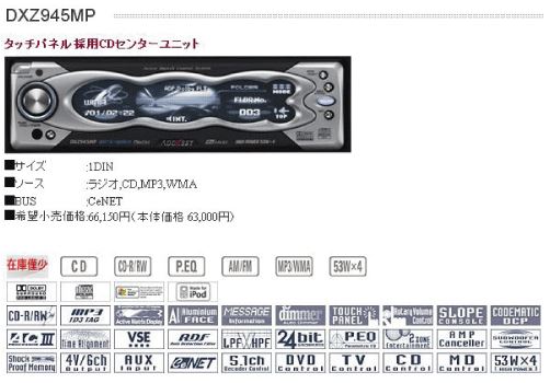 Supports playback of not only MP3 files but also the more highly compressed WMA (Windows Media® Audio) files. Enjoy over 100 songs on a single CDR/RW disc, making long drives a breeze. Playlist playback, ID3/WMA tag display with kanji support, and Romeo and Joliet long filename display are all supported. Multi-session functionality also enables playback of discs containing a mixture of CD-DA, MP3, and WMA tracks. DXZ945MP Kanji Text Support: The display for MP3/WMA files (ID3/WMA tags), CDs (CD=TEXT), and FM/AM (radio/TV station names) played on this unit can all be displayed in kanji, making it even easier to check song names and titles. 3-Band P.EQ: Adjust gain, Q (bandwidth), and center frequency for each of the three bands: low, mid, and high. You can fine-tune the sound settings to match the acoustic characteristics of your vehicle's interior and customize the sound to your preferences. The DCP (Detachable Control Panel) with Codematic Function features a blinking LED, allowing you to easily attach and detach the face panel when exiting the vehicle. This conceals the audio system when parked, helping to deter theft. The Codematic function also allows you to set a passcode to be required when attaching the DCP. Pure Aluminum Face and Power Slope Console The front face panel is made with luxurious aluminum parts. The top and bottom of the display feature a high-quality rubber feel, creating a luxurious design. The power slope console mechanism also allows the face panel to gently slide to reveal the CD slot, creating a high-grade interior. AC Processor III: The Anti-Distortion Filter enhances the entire high and low frequencies without compromising the original sound recorded on the disc, while Dolby Pro Logic II transforms any 2-channel source into a 5.1-channel experience for dynamic sound reproduction. Furthermore, "VSE" corrects for sound distortions caused by the shape of the vehicle interior, creating a high-quality acoustic environment. Furthermore, "Time Alignment" virtually equalizes speaker distances for all listeners, allowing for personalized acoustic adjustments and sound quality adjustments. Furthermore, "Parametric Equalizer" adjusts for specific frequency disturbances within the vehicle cabin and optimizes acoustic characteristics. This system is equipped with Azest's proprietary, cutting-edge digital processor, condensing advanced sound quality and sound field analysis technologies into a single chip. This makes it possible to create the ideal acoustic space in any vehicle cabin. 24-bit D/A Converter: The system is equipped with a high-resolution 24-bit D/A converter that converts digital signals recorded on CDs to analog with higher precision. This simultaneously improves sound density and clarity and reduces noise, reproducing even the subtlest sound components recorded on CDs without loss. The A/D converter is also 24-bit, pursuing even higher quality sound quality. High-Pass/Low-Pass Filter Equipped with high-pass and low-pass filters (both settings: THROUGH/50Hz/80Hz/120Hz) that allow you to set the frequency range sent to each channel, depending on the characteristics of the speakers connected to the front, rear, center, and subwoofer. By cutting out unnecessary frequency ranges to match the playback capabilities of each speaker, you can build a more advanced 5.1ch system. Amp Canceller When an external amplifier is connected, the built-in amp canceller reduces distortion and cancels the amplifier output. This function is effective when upgrading your system.