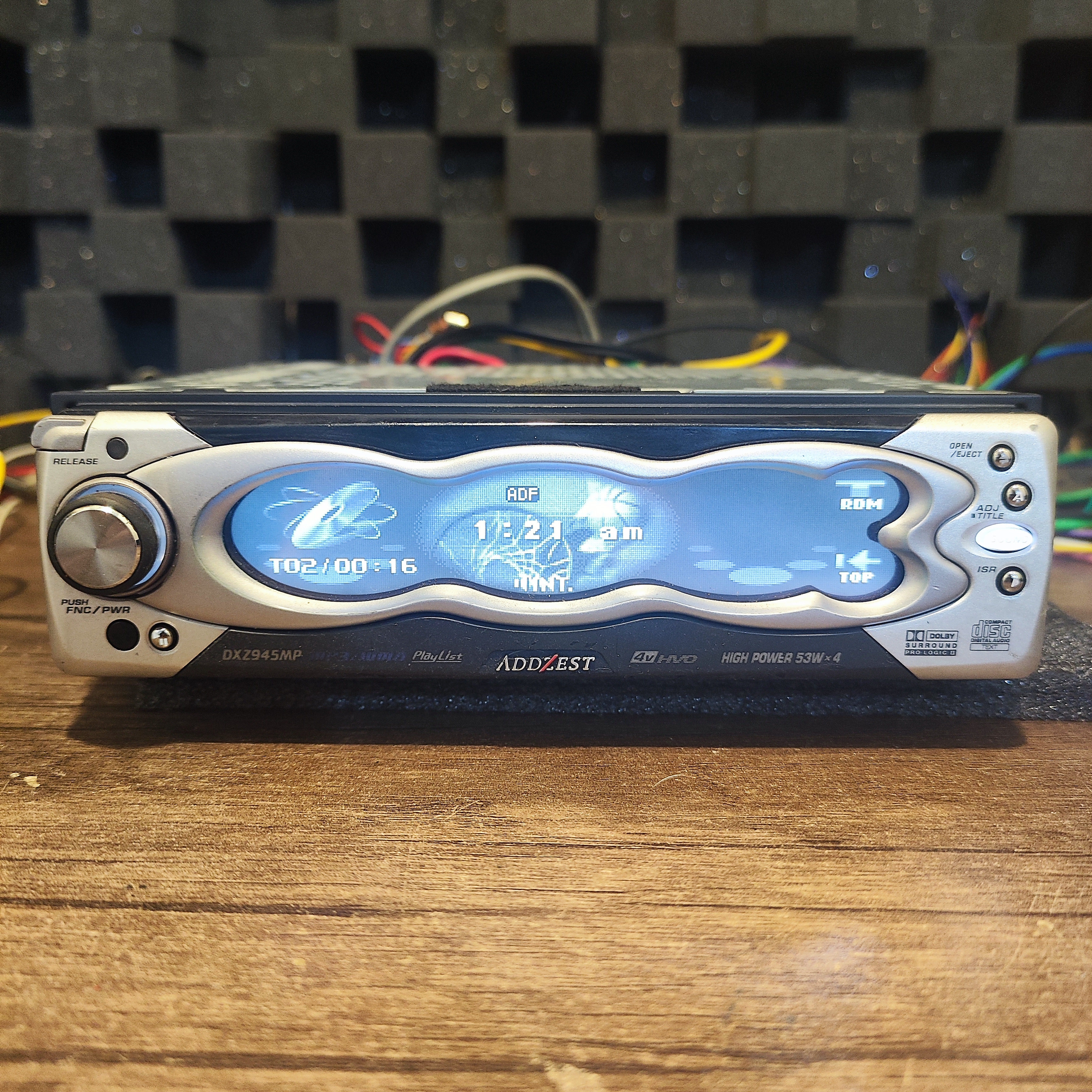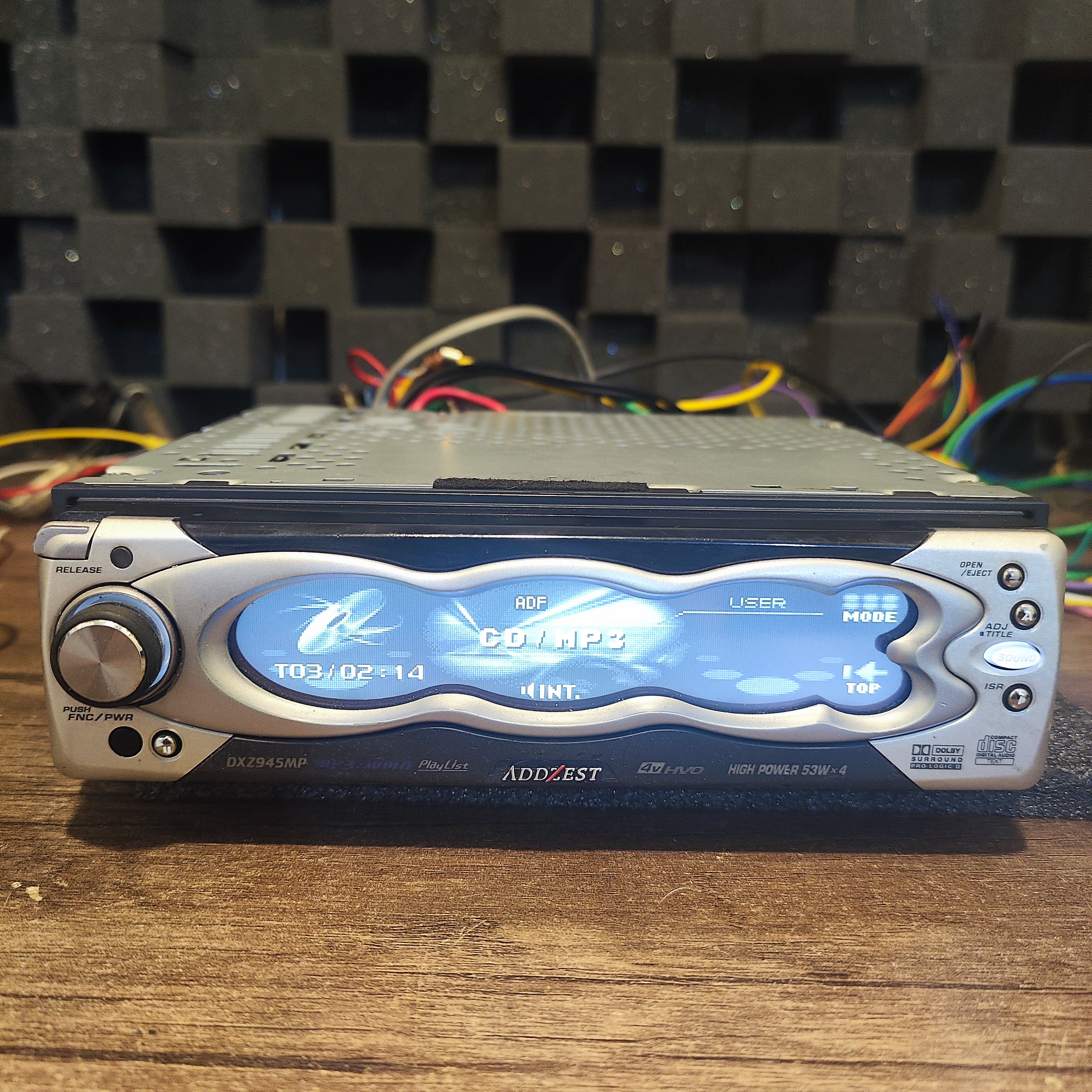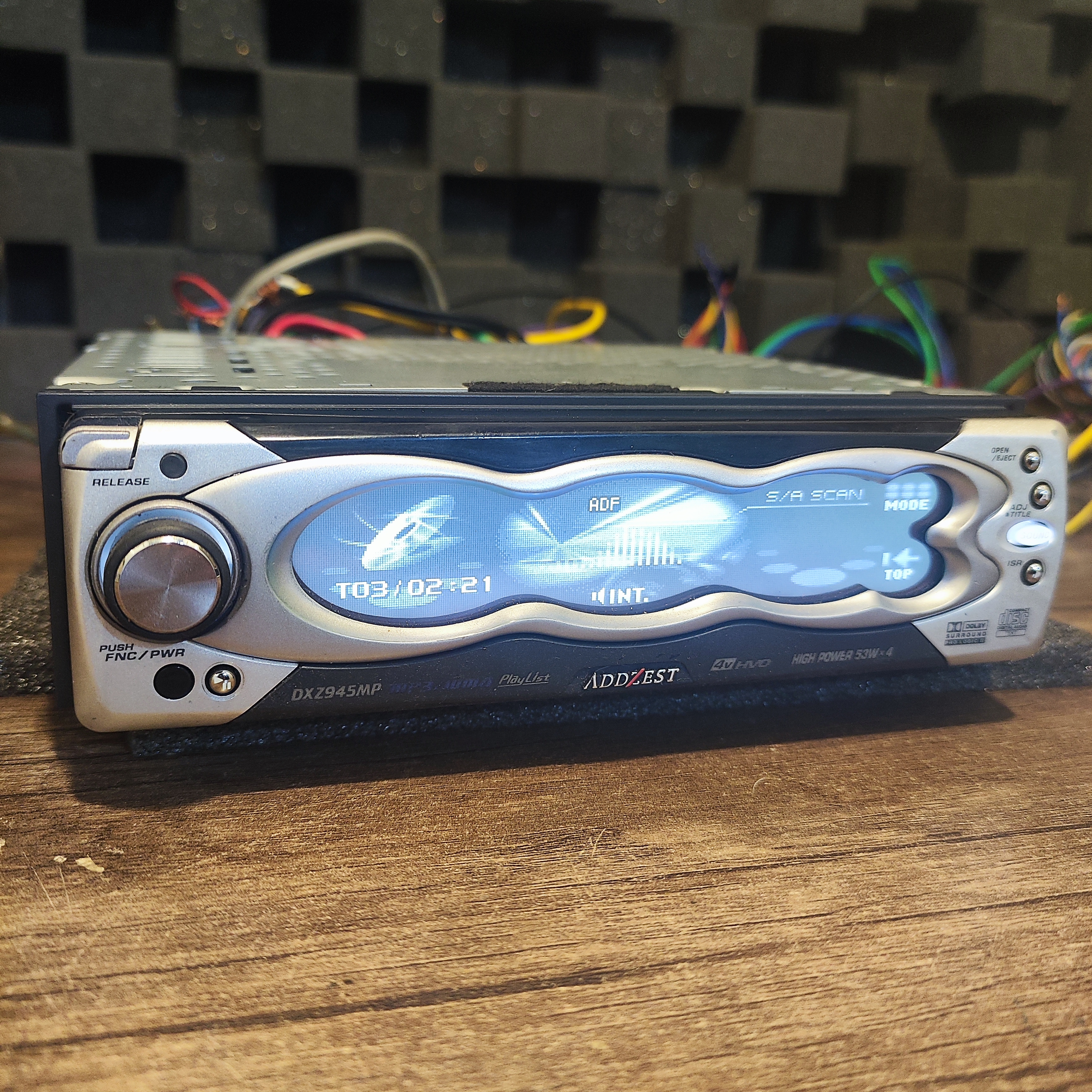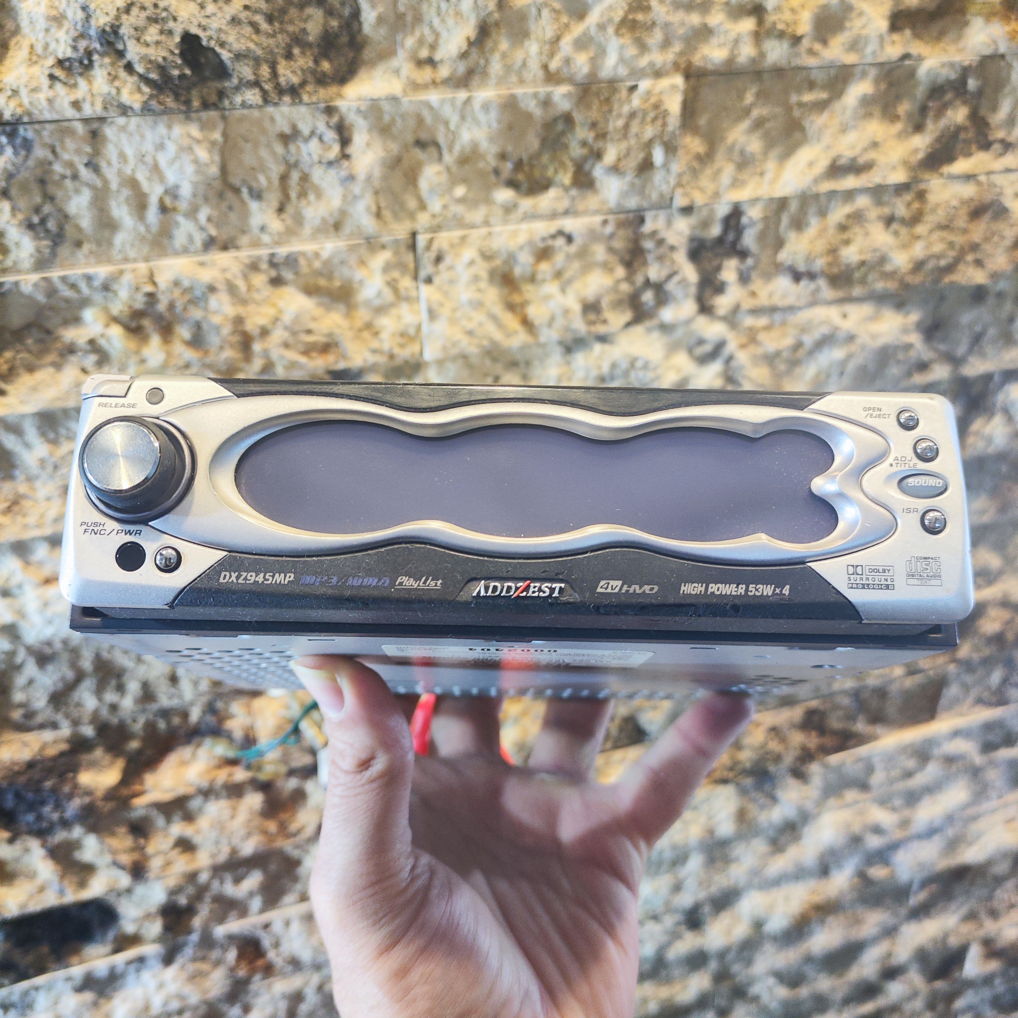 Supports playback of not only MP3 files but also the more highly compressed WMA (Windows Media® Audio) files. Enjoy over 100 songs on a single CDR/RW disc, making long drives a breeze. Playlist playback, ID3/WMA tag display with kanji support, and Romeo and Joliet long filename display are all supported. Multi-session functionality also enables playback of discs containing a mixture of CD-DA, MP3, and WMA tracks. DXZ945MP Kanji Text Support: The display for MP3/WMA files (ID3/WMA tags), CDs (CD=TEXT), and FM/AM (radio/TV station names) played on this unit can all be displayed in kanji, making it even easier to check song names and titles. 3-Band P.EQ: Adjust gain, Q (bandwidth), and center frequency for each of the three bands: low, mid, and high. You can fine-tune the sound settings to match the acoustic characteristics of your vehicle's interior and customize the sound to your preferences. The DCP (Detachable Control Panel) with Codematic Function features a blinking LED, allowing you to easily attach and detach the face panel when exiting the vehicle. This conceals the audio system when parked, helping to deter theft. The Codematic function also allows you to set a passcode to be required when attaching the DCP. Pure Aluminum Face and Power Slope Console The front face panel is made with luxurious aluminum parts. The top and bottom of the display feature a high-quality rubber feel, creating a luxurious design. The power slope console mechanism also allows the face panel to gently slide to reveal the CD slot, creating a high-grade interior. AC Processor III: The Anti-Distortion Filter enhances the entire high and low frequencies without compromising the original sound recorded on the disc, while Dolby Pro Logic II transforms any 2-channel source into a 5.1-channel experience for dynamic sound reproduction. Furthermore, "VSE" corrects for sound distortions caused by the shape of the vehicle interior, creating a high-quality acoustic environment. Furthermore, "Time Alignment" virtually equalizes speaker distances for all listeners, allowing for personalized acoustic adjustments and sound quality adjustments. Furthermore, "Parametric Equalizer" adjusts for specific frequency disturbances within the vehicle cabin and optimizes acoustic characteristics. This system is equipped with Azest's proprietary, cutting-edge digital processor, condensing advanced sound quality and sound field analysis technologies into a single chip. This makes it possible to create the ideal acoustic space in any vehicle cabin. 24-bit D/A Converter: The system is equipped with a high-resolution 24-bit D/A converter that converts digital signals recorded on CDs to analog with higher precision. This simultaneously improves sound density and clarity and reduces noise, reproducing even the subtlest sound components recorded on CDs without loss. The A/D converter is also 24-bit, pursuing even higher quality sound quality. High-Pass/Low-Pass Filter Equipped with high-pass and low-pass filters (both settings: THROUGH/50Hz/80Hz/120Hz) that allow you to set the frequency range sent to each channel, depending on the characteristics of the speakers connected to the front, rear, center, and subwoofer. By cutting out unnecessary frequency ranges to match the playback capabilities of each speaker, you can build a more advanced 5.1ch system. Amp Canceller When an external amplifier is connected, the built-in amp canceller reduces distortion and cancels the amplifier output. This function is effective when upgrading your system.