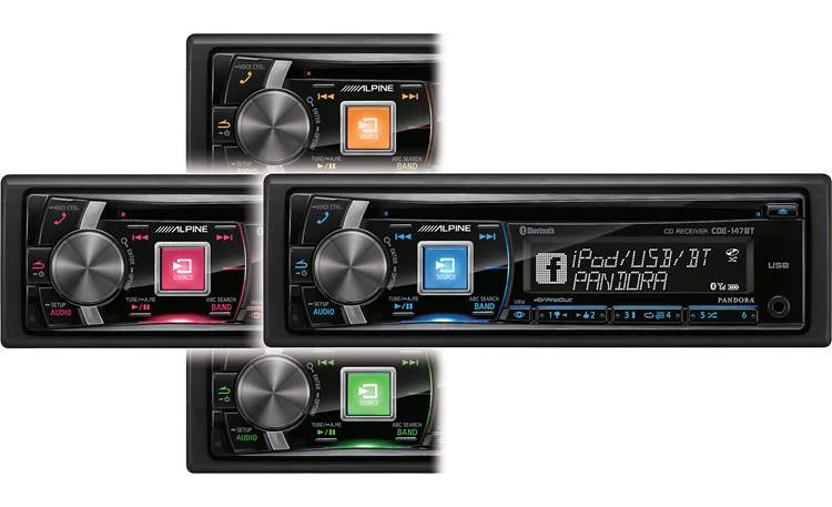 The CDE-147BT CD receiver kicks off Alpine's line of Bluetooth® equipped receivers for 2013. It lets you make and take calls hands-free when you're in the car, so you can keep your attention on the road while you talk — no fumbling for the phone or driving with one hand in busy traffic. And you can stream audio from your Bluetooth devices too, with receiver control of basic functions like "track up" and "track down." Plus, Alpine's Quad illumination lets you choose from four different colors for the receiver's control buttons for a style that'll work in your car.