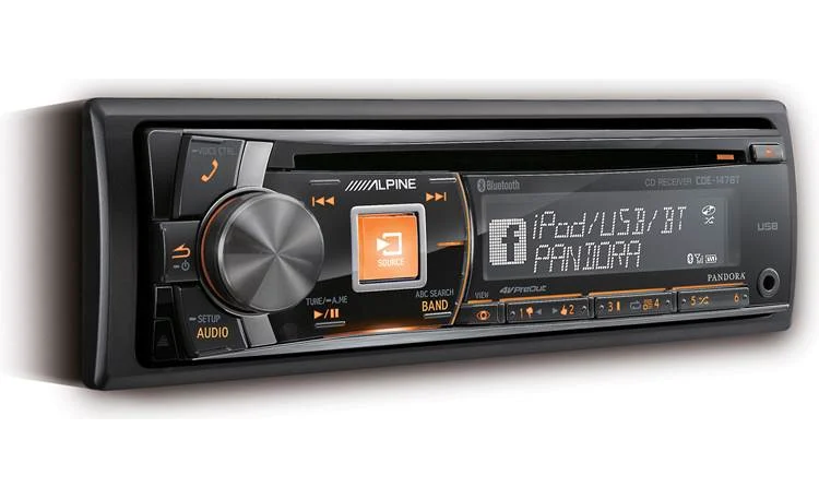The CDE-147BT offers a handy front-panel auxiliary input and a rear USB port with an extension cable. Alpine's App Direct Mode lets you control basic playback and view metadata from many iPhone music apps, and you'll have full control over the music stored on your iPhone or iPod® when connected by USB. Of course you can enjoy your CDs too, including discs loaded with MP3, WMA, or AAC music files.