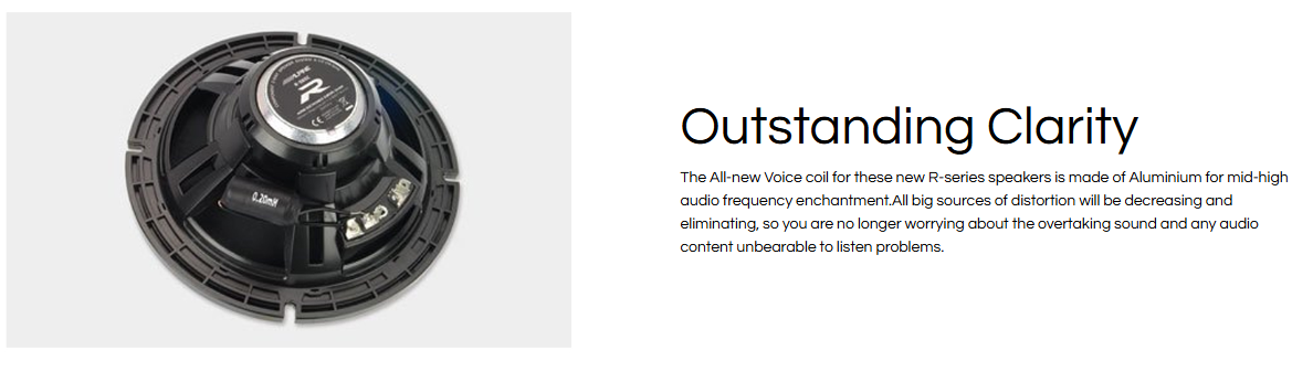 کامپوننت R-S65C.2 از سری R آلپاین، به همراه ووفرهای خارق العاده به انضام مگنت نئودیمیوم و تویتر دام خود نویدبخش صدایی پرقدرت و پردیتیل میباشد.