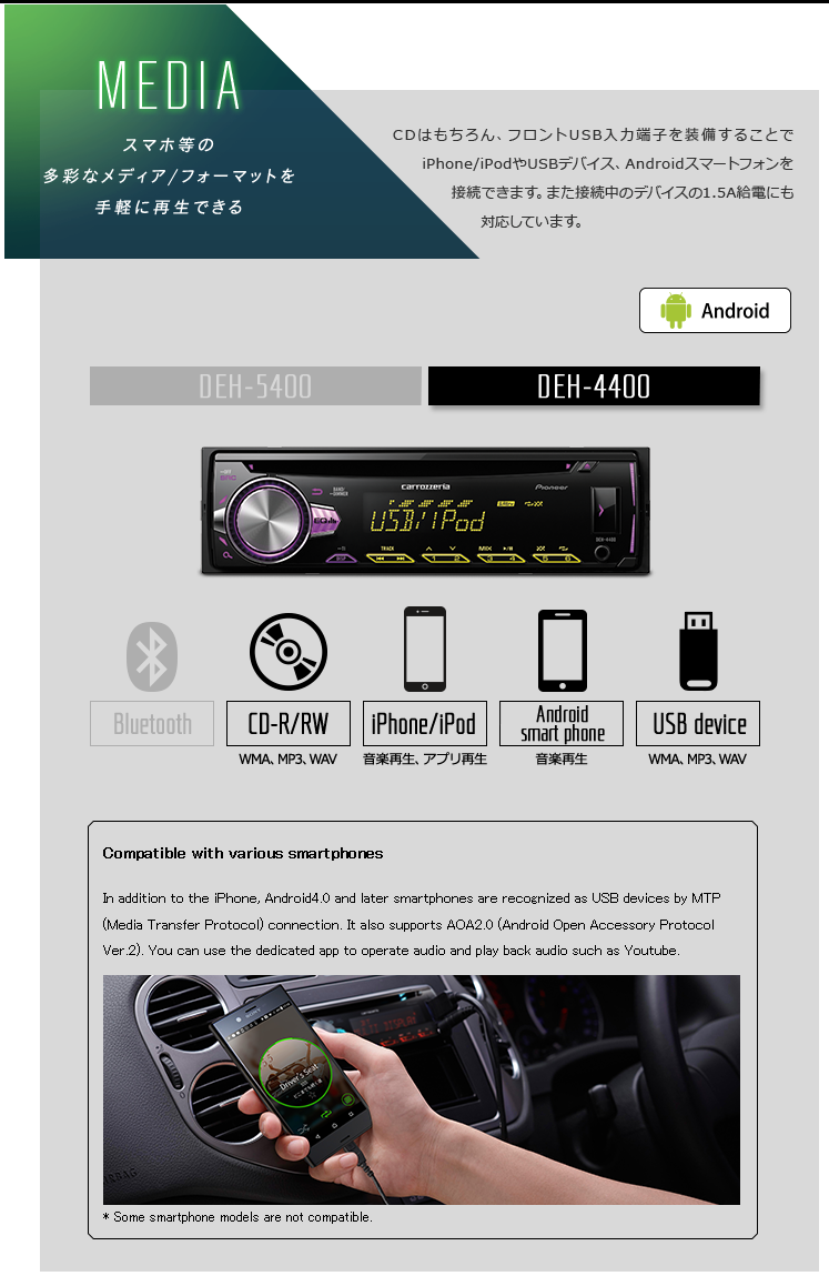 - قابلیت استفاده از برنامه SMART SINC شرکت پایونیر جهت کنترل تنظیمات و موزیک ها از روی گوشی موبایل