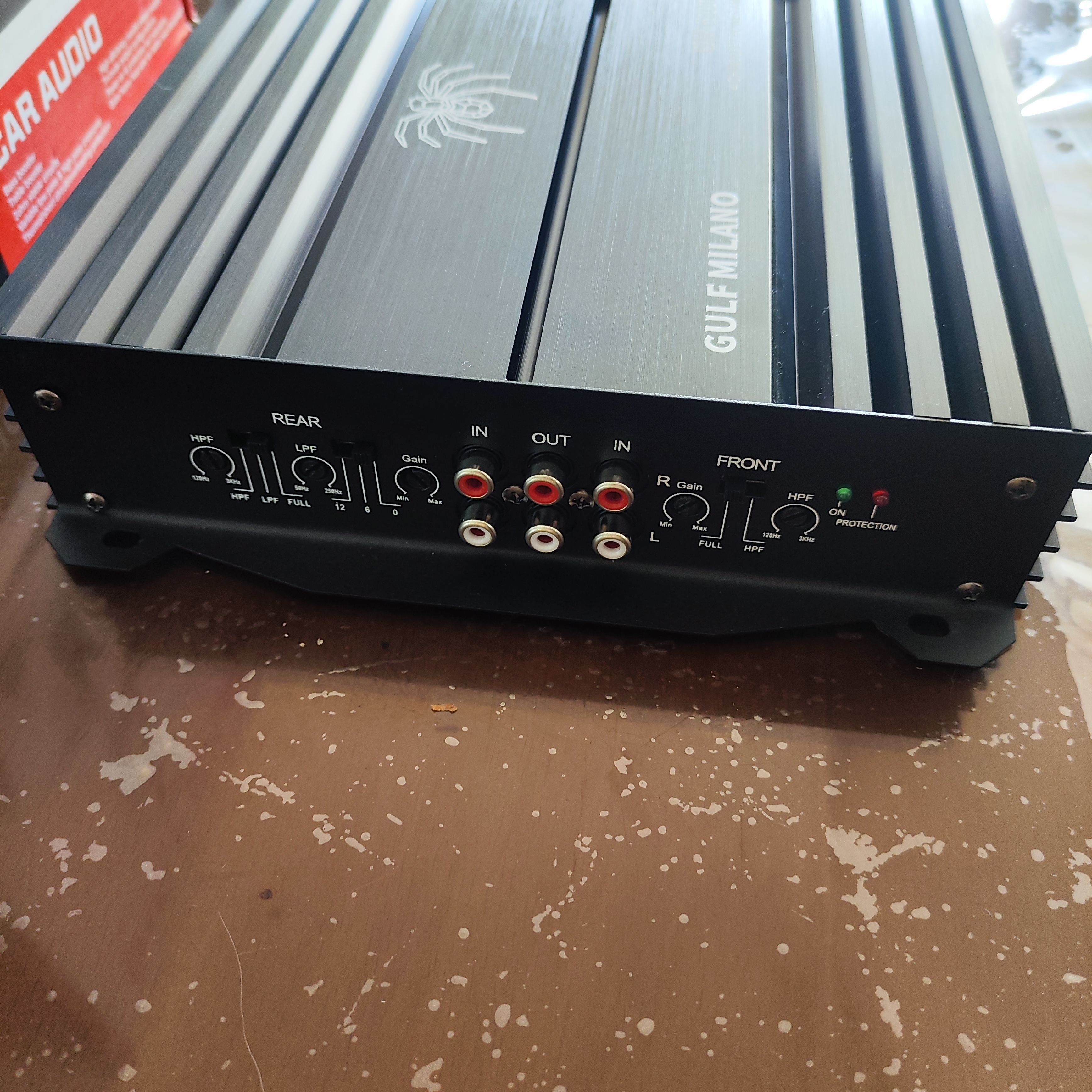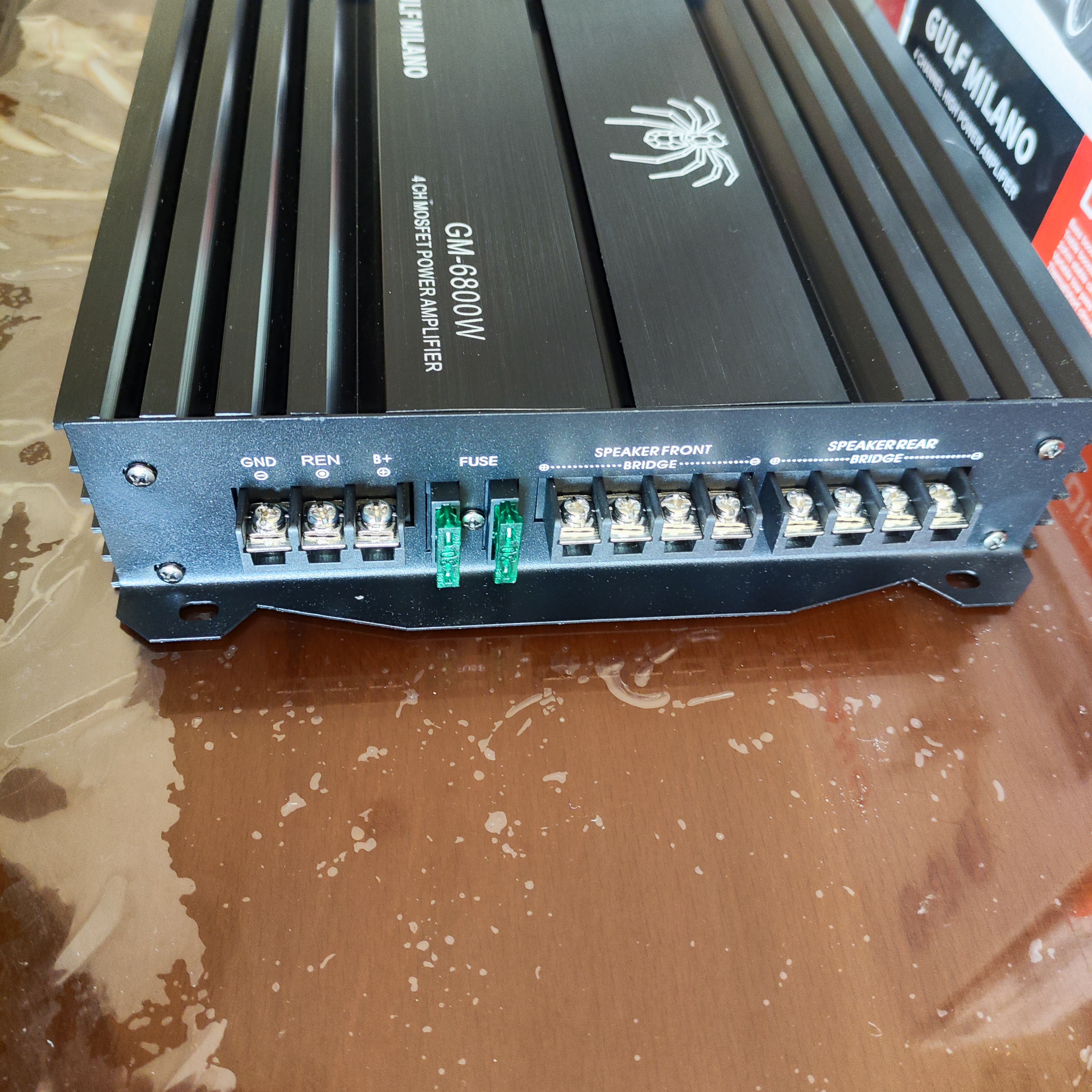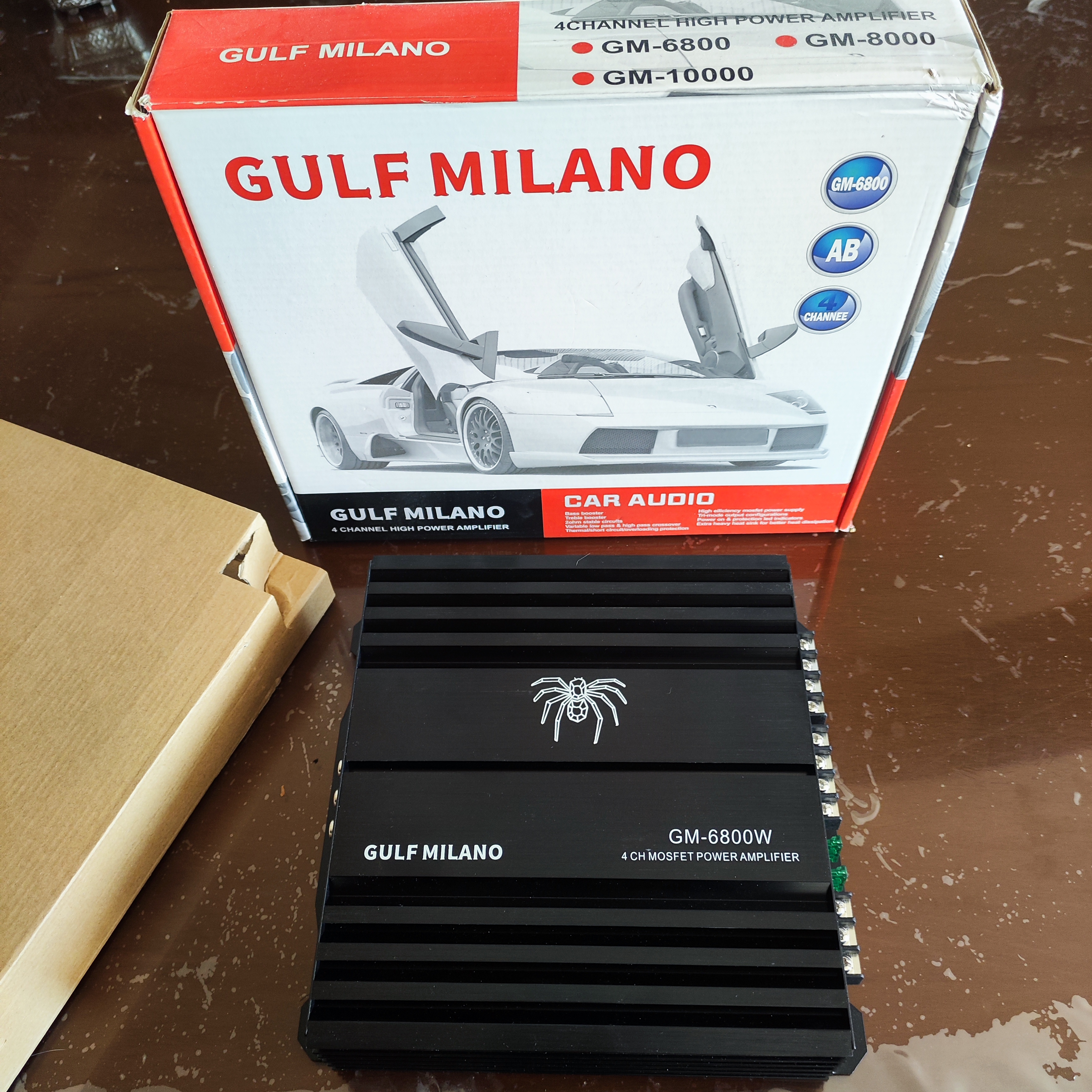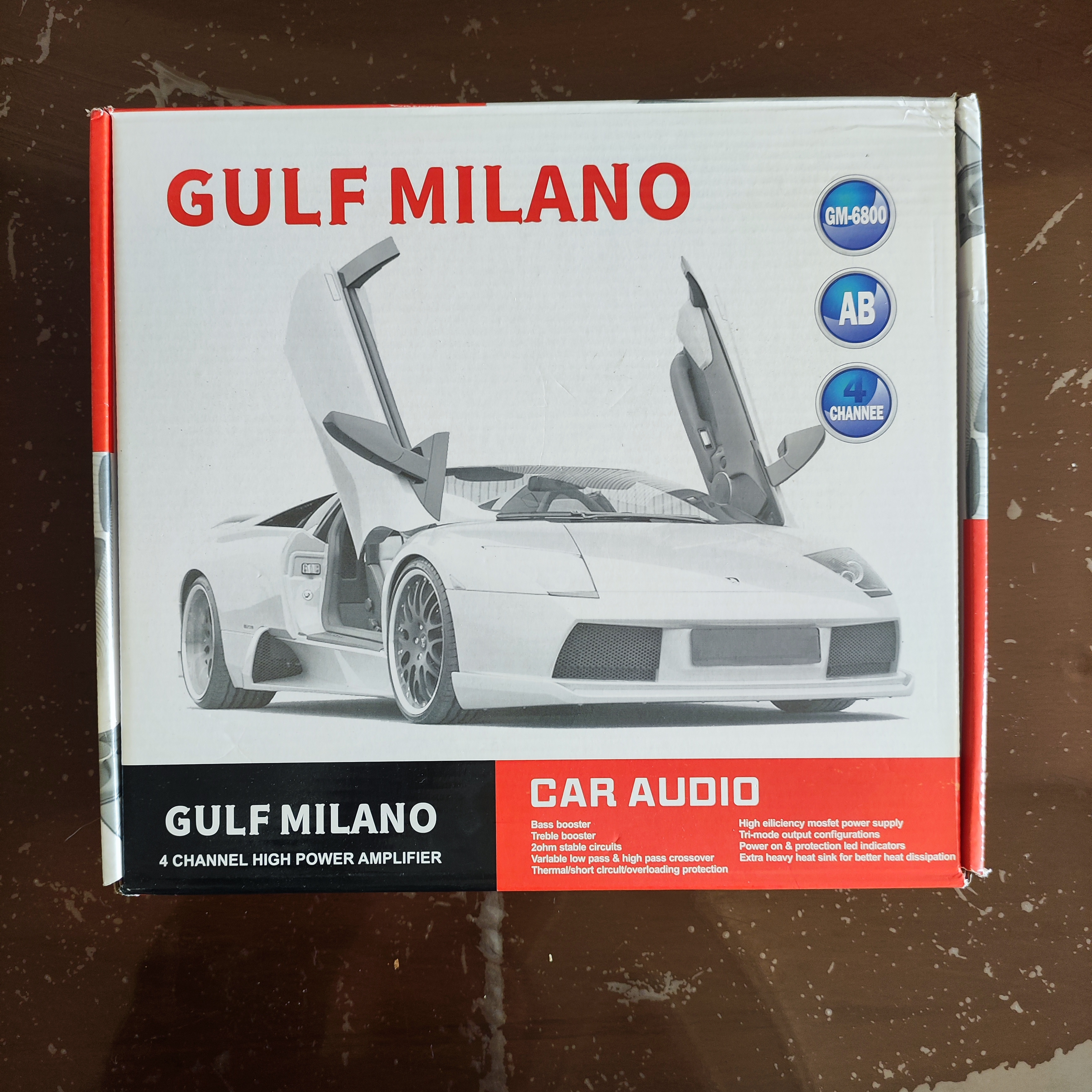 امپلیفایر از برند گلف میلانو، ۴ کانال استریو، کلاسA/B, دارای توان ۴ تا ۶۰ وات ار ام اس روی ۴ اهم، مناسب برای راه اندازی دو جفت باند و یا یک جفت باند و یک عدد سابووفر