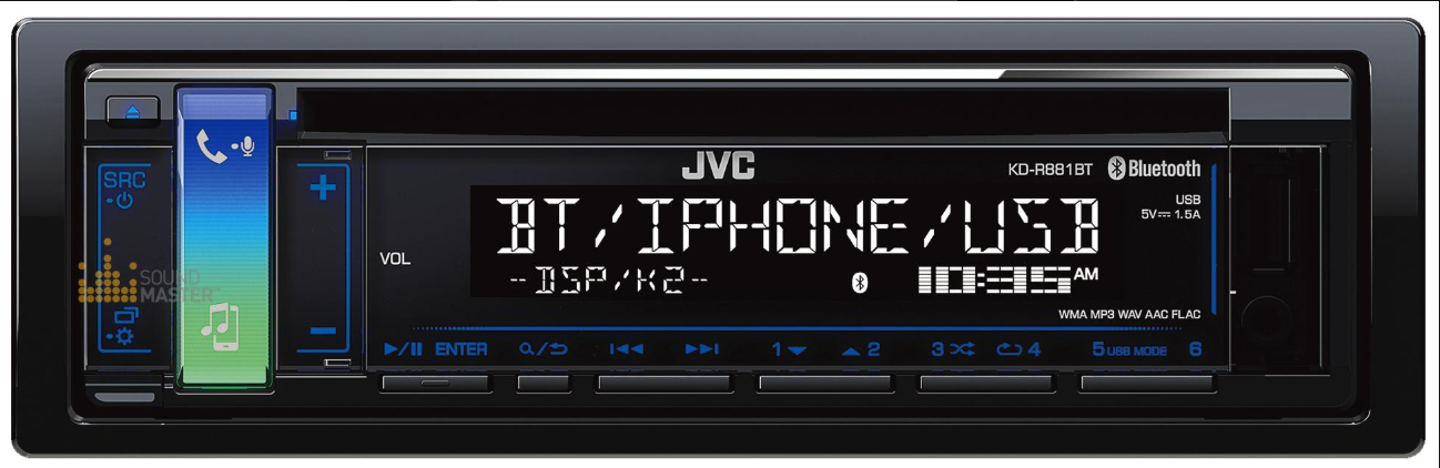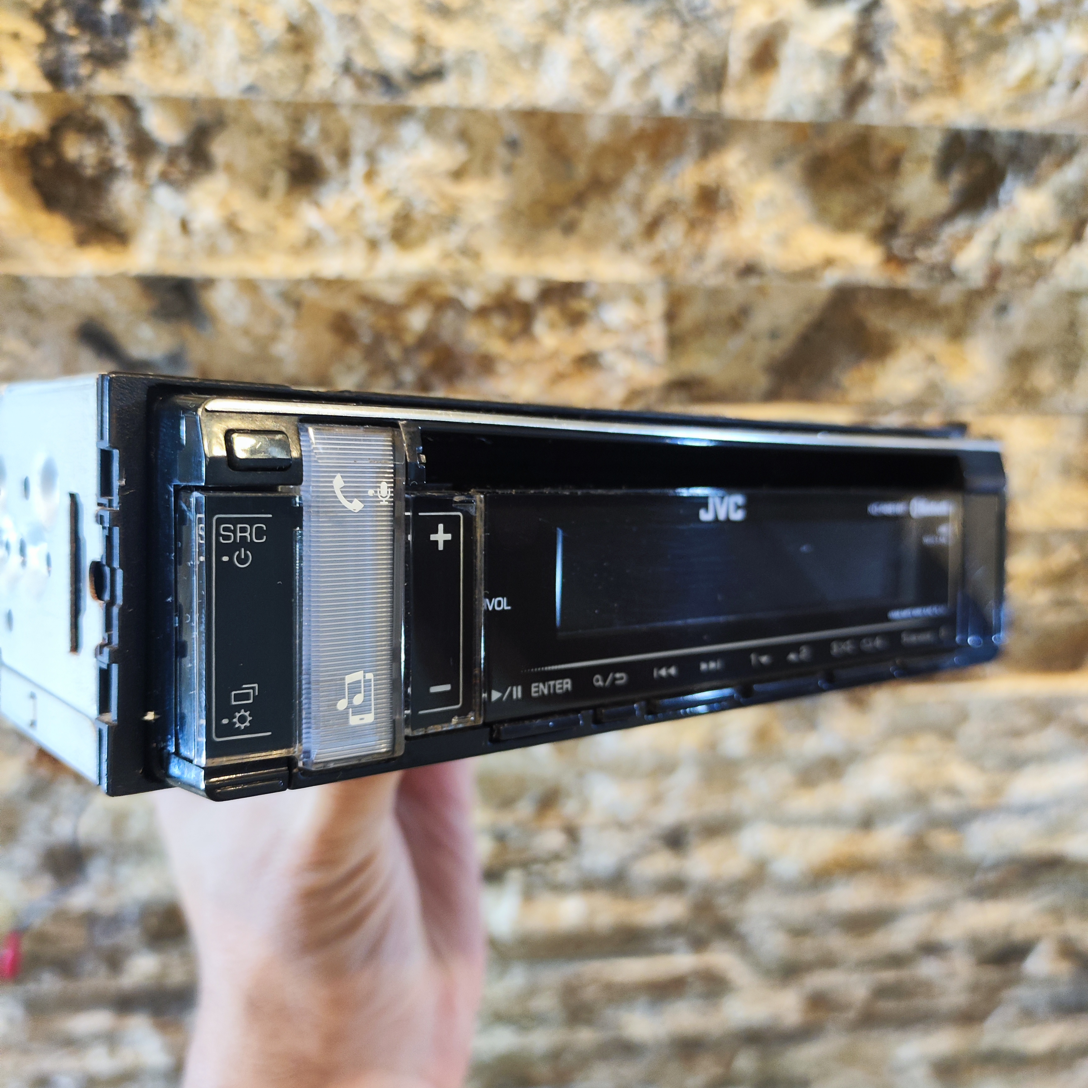پخش پرچمدار JVC, استوک (کارکرده)،دک صوتی ۲۴ بیت، ساپورت فرمت flac، دارای۶خروج۴ولت، بلوتوث موزیک و مکالمه،13 بانداکولایزر،HPF,LPF مجزا،انتخاب نوع خودرو و نوع باند و سایز باند و محل قرارگیری باند، مولتی کالر