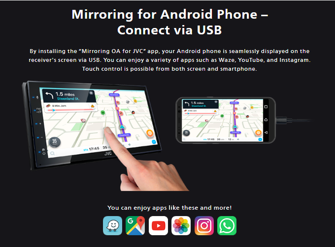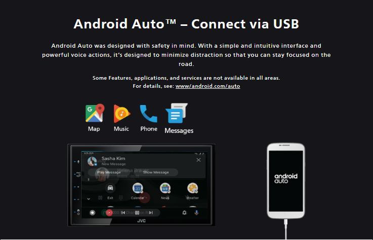 * To use Android Auto on your car display, you'll need an Android phone running Android 6 or higher, an active data plan, and the Android Auto app. The service may not be available in certain countries.Mirroring for AndroidYesWired mirroringYes, via USB