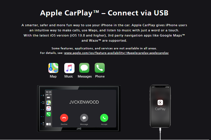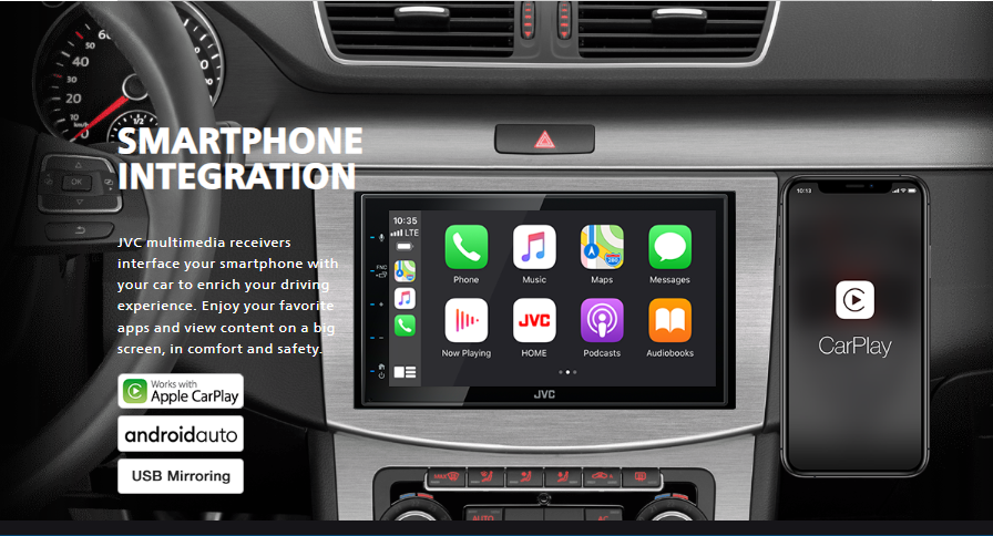 پخش استوک(کارکرده) دودین حرفه ای جی وی سی، دارای تکنولوژی ANDROID AUTO-APPLE CAR PLAY-قابلیت MIRRORLINK برای اندروید، دک صوتی 24 بیت، 5 خروجی 2 ولت،13 باند اکولایزر، کراس اور مجزا برای هر استیج، تایم الاینمنت، ساپورت فرمت FLAC کد ۰1