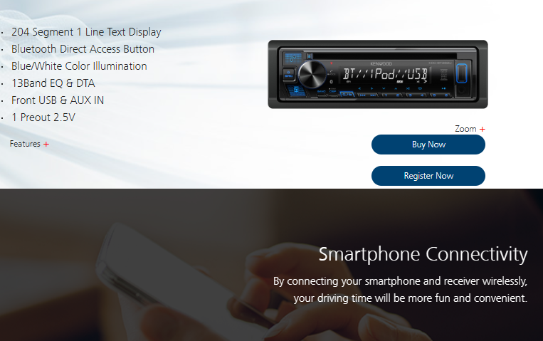 پخش استوک(کارکرده) کنوود، کاملترین پخش دو خروجی شرکت کنوود، دک صوتی ۲۴ بیت، ساپورت فرمت FLAC، دو خروج ۲.۵ ولتی، بلوتوث موزیک و مکالمه، 13 باند اکولایزر، HPF LPF مجزا برای هر استیج، تایم الاینمنت