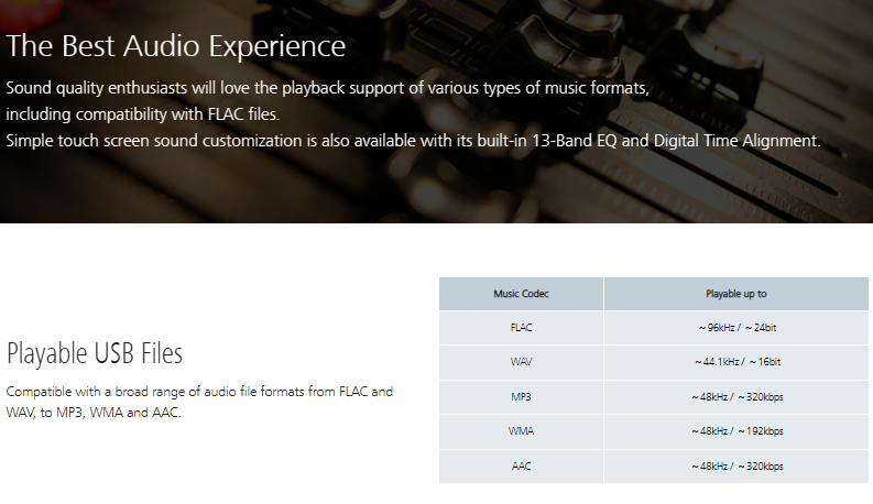 - پخش MP3/WMA/WAV و ساپورت فرمت FLAC