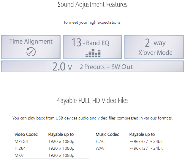 | 42 | MP3 / WMA / iTunes AAC Playback | USB |
