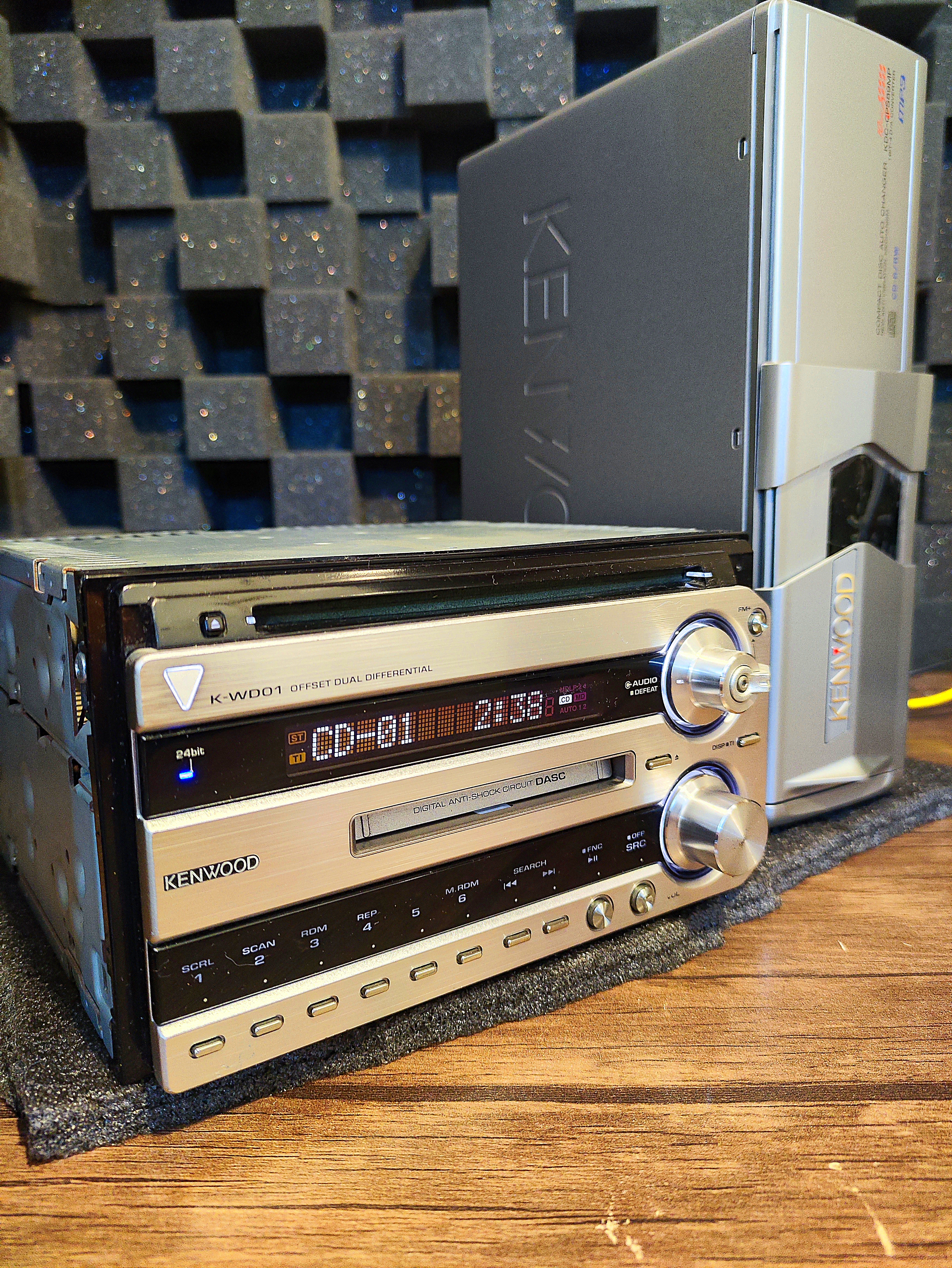 پخش دودین کنوود، این مدل دارای صدای SQ محض همراه با DAC BURR-BROWN میباشد، ۶ خروجی آرسی گلد، دارای درایو CD و درایو MD, همراه با چنجر آکبند کنوود MP3(کد02)