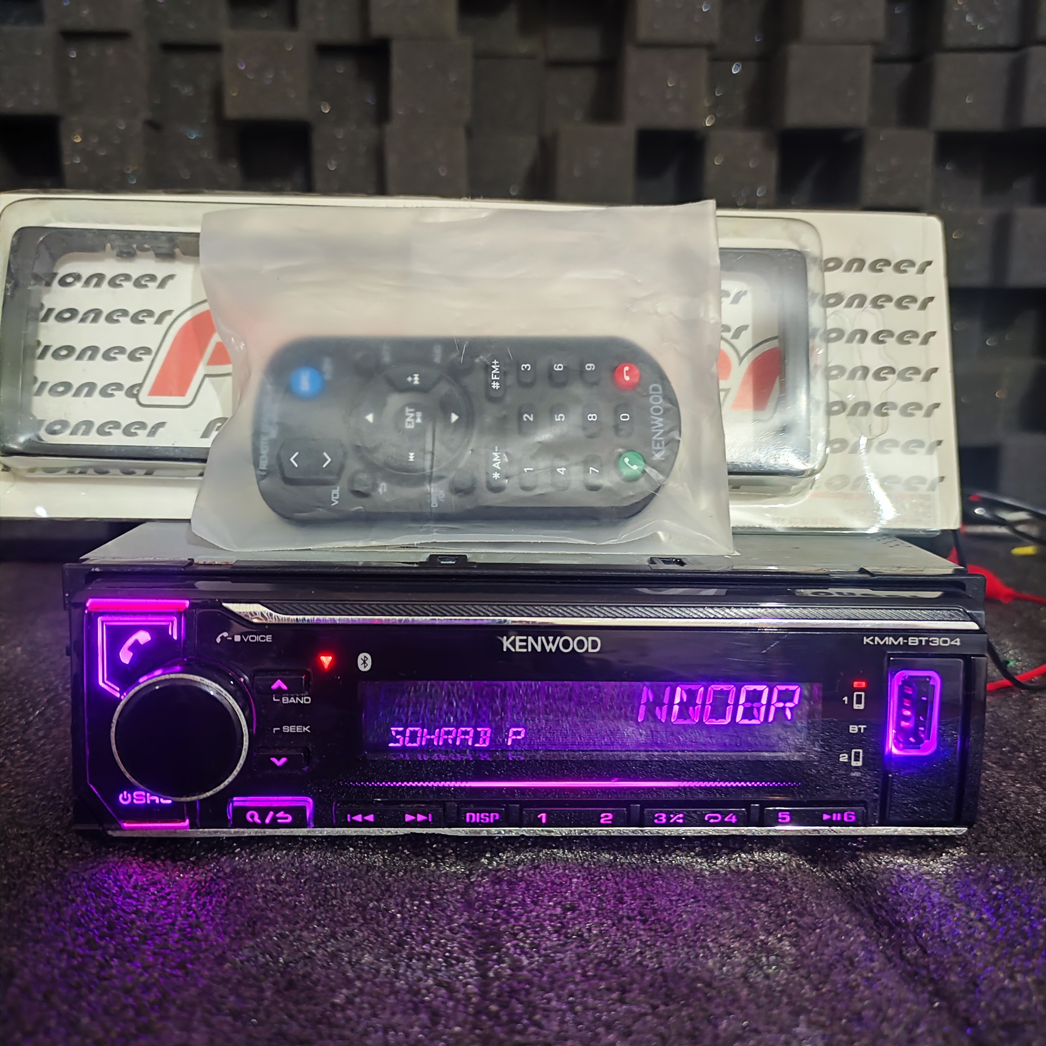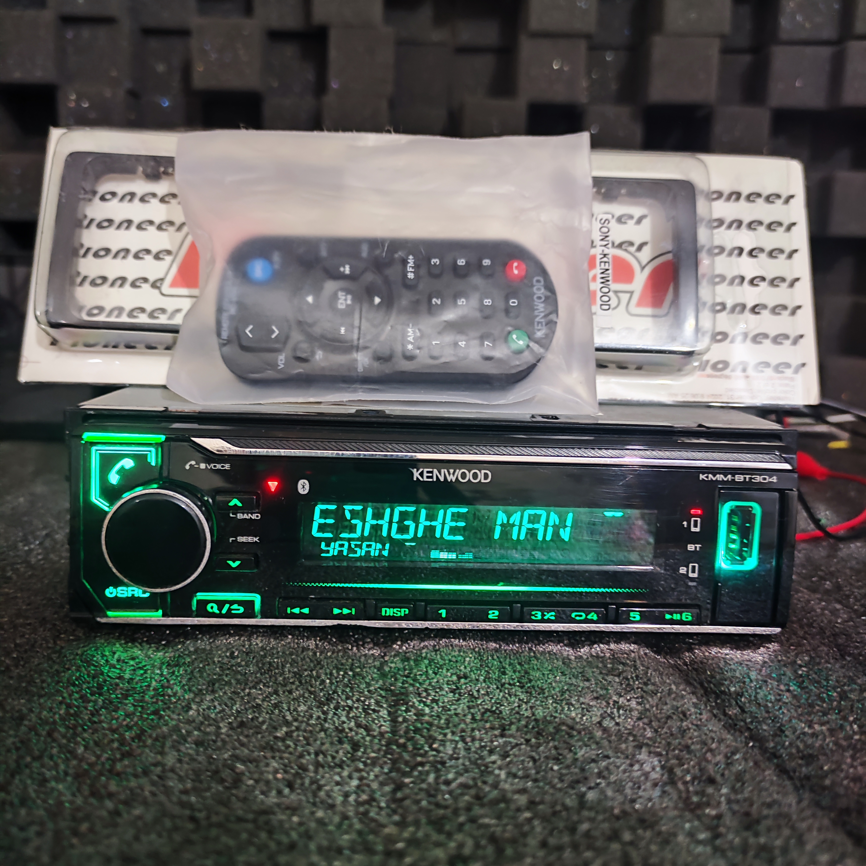 معرفي پخش 304 كنوود: 304 اولین نسل از رادیوفلشهای 6 خرئجی شرکت کنوود با قابلیت ساپورت بلوتوث می باشد. اگر شما نيز جزء كساني هستيد كه سي دي براي شما كاربردي ندارد و دنبال پخشي با قيمت مناسب و امان بلوتوث هستيد محصول درستي را انتخاب كرده ايد. 304 سي دي را ساپورت نمي كند ولي امكان ساپورت بلوتوث و فلش و قيمت مناسب آن باعث شده است طرفداران بسيار زيادي پدا كند. از ديگر ويژگيهاي 304 مي توان به خروجي 3 جفت سيستم آن كه هر كدوم 4 ولت هستند اشاره كرد. تنظیمات جاگانه برای اب ووفر از جمله ویژگیهای این رادیوفلش کنوود می باشد. اين خروجيها باعث مي شوند 304 اولين و تنها راديوفلش بلوتوثي با قابليت سيستمها نسبتا حرفه اي باشد. 304 تنظيمات صدايي عالي نيز دارد و با 13 باند اكولايزر تنظيمات صدايي گزینه بسیار حرفه ای بشمار می اید. ويژگي هاي 304 كنوود كاملا بروز مي باشد، با اين پخش شما براحتی می توانید برای پخش موسیقی بین 5 گوشی حرکت کنید و آهنگ مورد نظر خودتان را انتخاب کنید. همچنین 304 برنامه Kenwood Remote App را ساپورت می کند که شما می توانید برای گوشی اندروید و iPhone خود این برنامه رو دانلود کنید و از گوشی خود به عنوان 1 ریموت کنترل همه کاره جهت پخش آهنگ، انتخاب فولدر و آهنگ، تنظیم صدا و حتی بقیه تنظیمات پخش استفاده کنید.