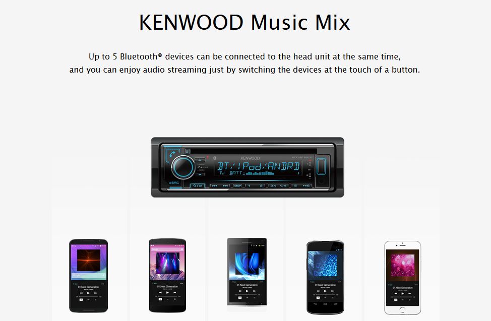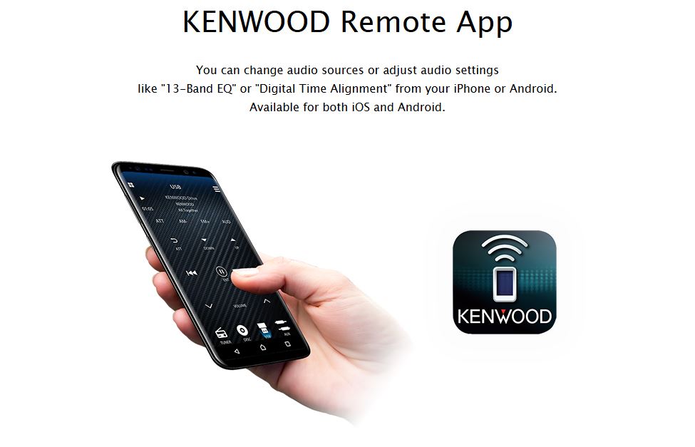 - قابلیت اتصال به گوشی و کنترل پخش بوسیله برنامه Kenwood Remote App. بوسیله این برنامه شما می توانید بدون نیاز به دسترسی به پخش و یا ریموت کنترل آن تمام کنترل رادیوپخش خود را از طریق گوشی خود داشته باشید. ( تغییر صدا، تعویض آهنگ، تعویض فولد، کنترل صفحه نمایش) .