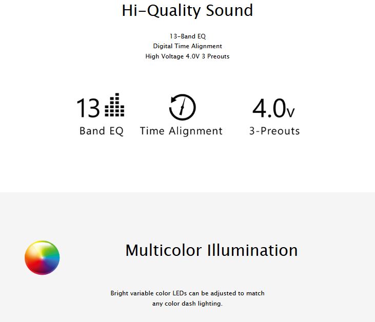 | Amplifier pre-out | RCA: Front/Rear/Subwoofer |