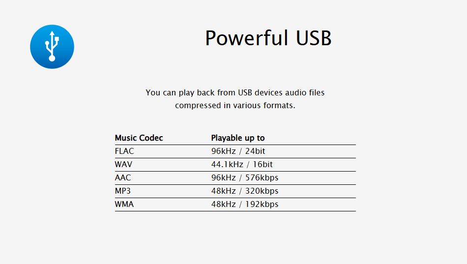 | FLAC Format | FLAC files (up to 96kHz/24bit) |