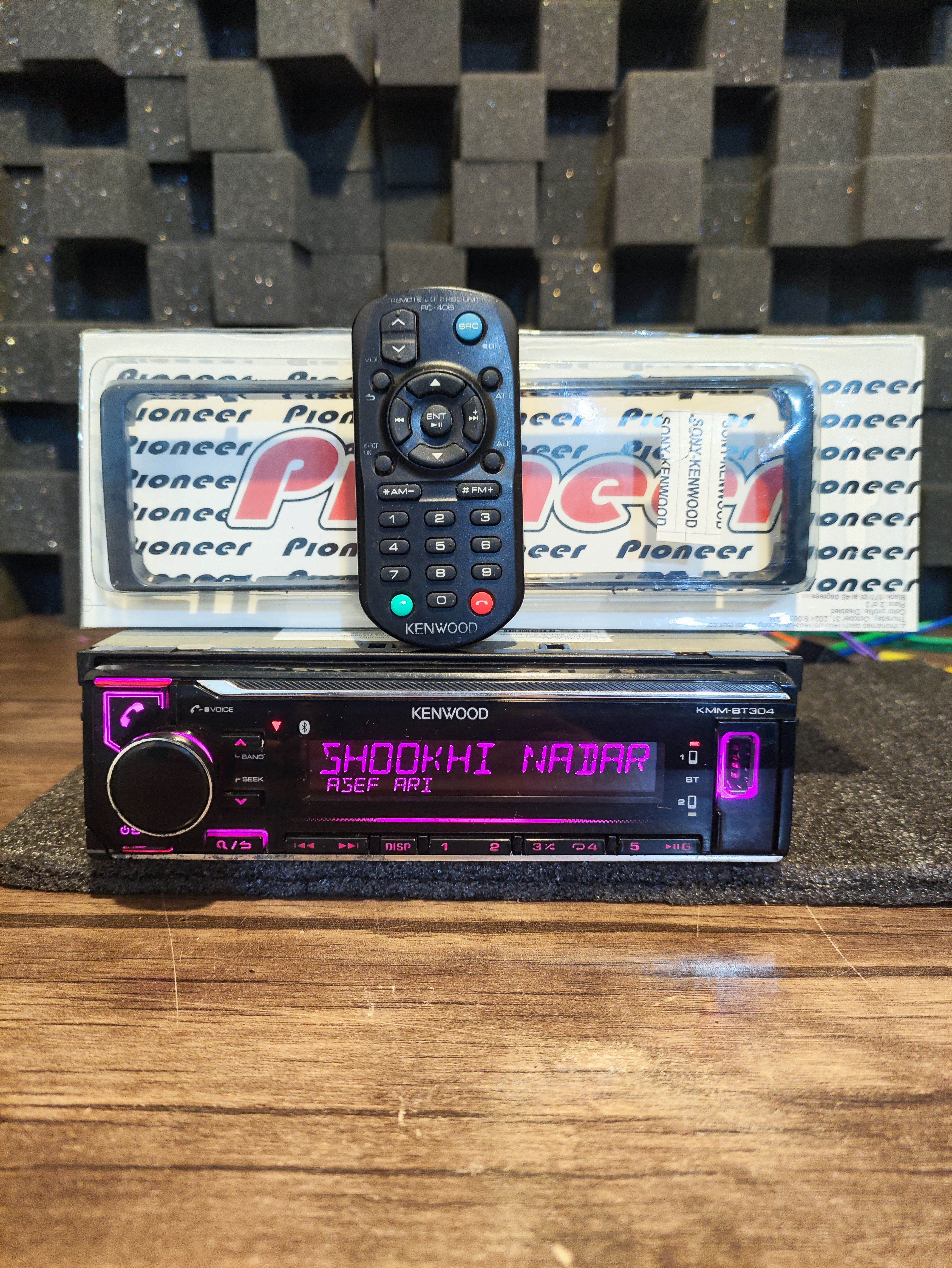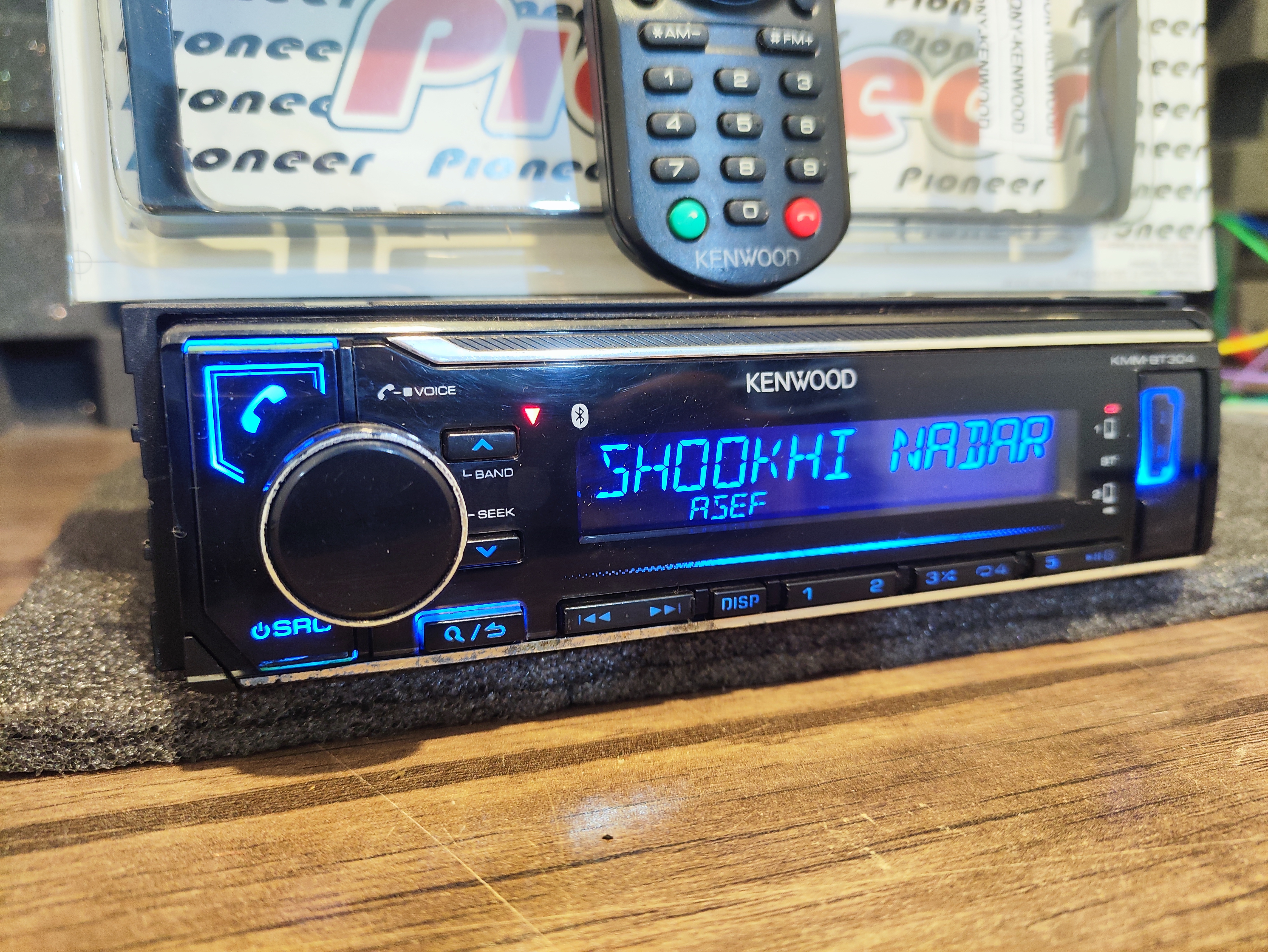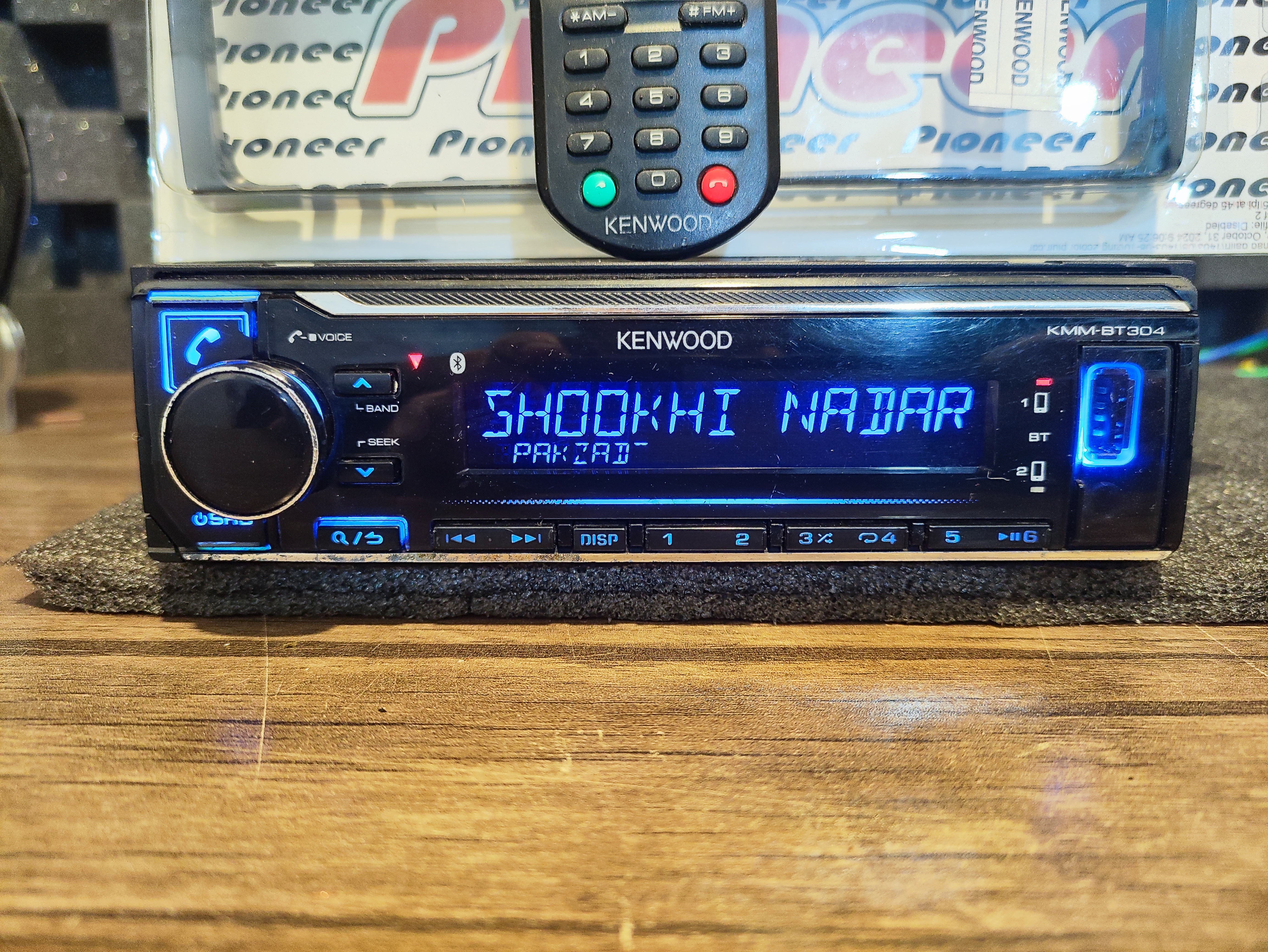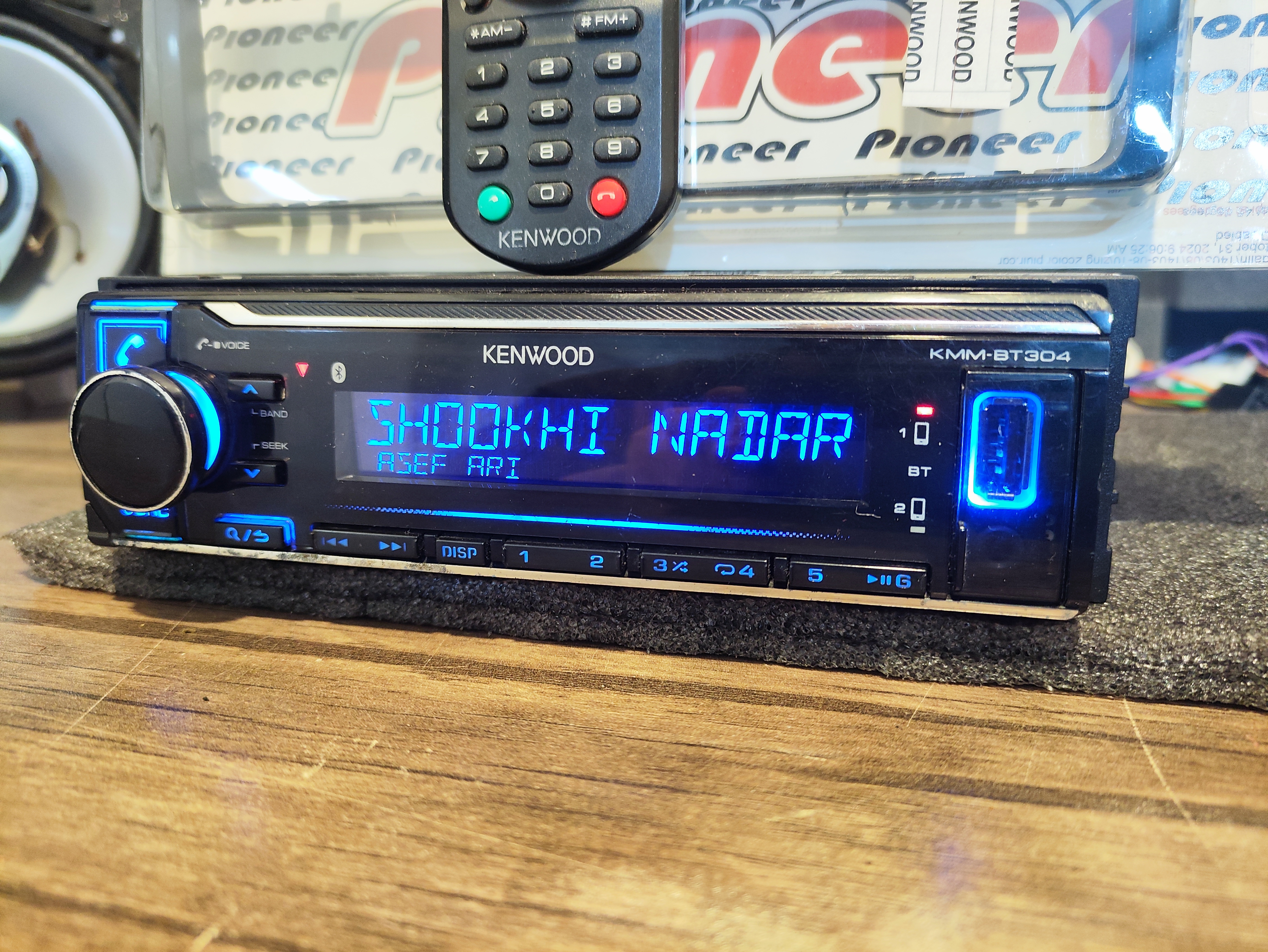 معرفي پخش 304 كنوود: 304 اولین نسل از رادیوفلشهای 6 خرئجی شرکت کنوود با قابلیت ساپورت بلوتوث می باشد. اگر شما نيز جزء كساني هستيد كه سي دي براي شما كاربردي ندارد و دنبال پخشي با قيمت مناسب و امان بلوتوث هستيد محصول درستي را انتخاب كرده ايد. 304 سي دي را ساپورت نمي كند ولي امكان ساپورت بلوتوث و فلش و قيمت مناسب آن باعث شده است طرفداران بسيار زيادي پدا كند. از ديگر ويژگيهاي 304 مي توان به خروجي 3 جفت سيستم آن كه هر كدوم 4 ولت هستند اشاره كرد. تنظیمات جاگانه برای اب ووفر از جمله ویژگیهای این رادیوفلش کنوود می باشد. اين خروجيها باعث مي شوند 304 اولين و تنها راديوفلش بلوتوثي با قابليت سيستمها نسبتا حرفه اي باشد. 304 تنظيمات صدايي عالي نيز دارد و با 13 باند اكولايزر تنظيمات صدايي گزینه بسیار حرفه ای بشمار می اید. ويژگي هاي 304 كنوود كاملا بروز مي باشد، با اين پخش شما براحتی می توانید برای پخش موسیقی بین 5 گوشی حرکت کنید و آهنگ مورد نظر خودتان را انتخاب کنید. همچنین 304 برنامه Kenwood Remote App را ساپورت می کند که شما می توانید برای گوشی اندروید و iPhone خود این برنامه رو دانلود کنید و از گوشی خود به عنوان 1 ریموت کنترل همه کاره جهت پخش آهنگ، انتخاب فولدر و آهنگ، تنظیم صدا و حتی بقیه تنظیمات پخش استفاده کنید.