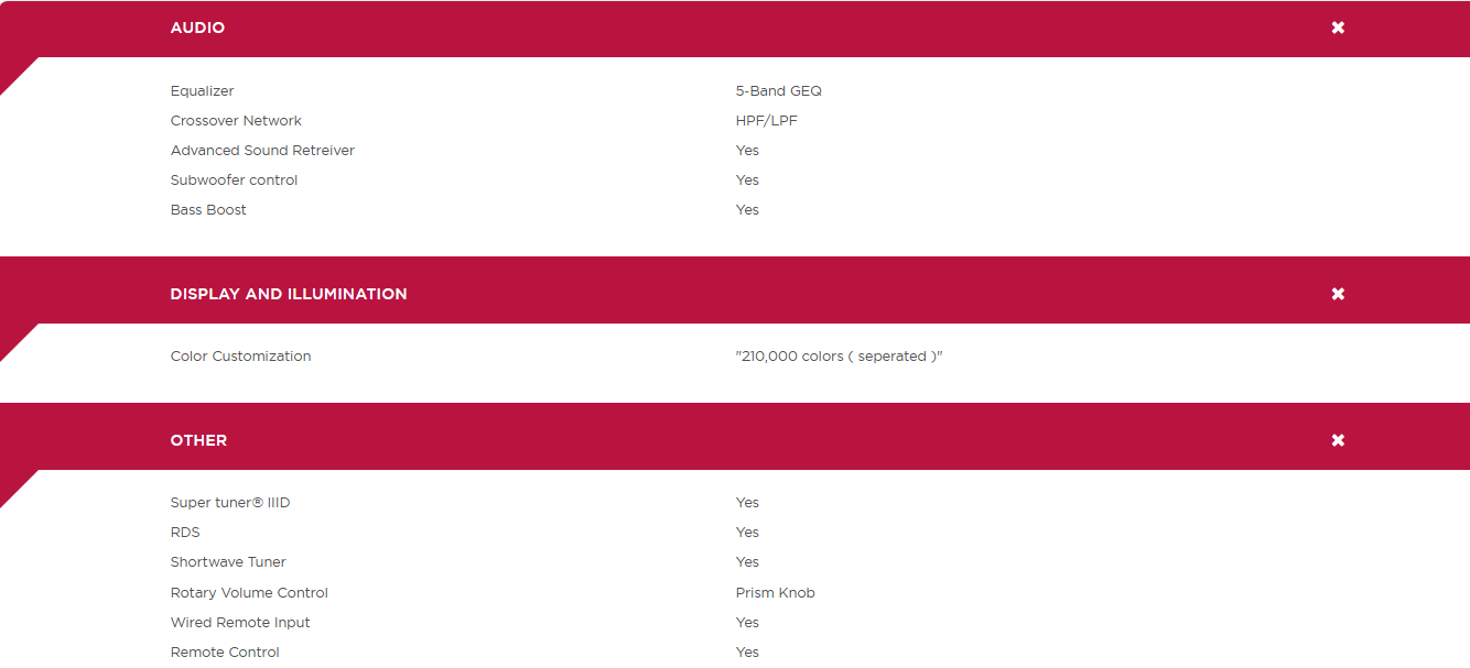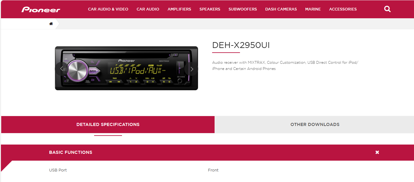 مشخصات طبق کاتالوگ شرکت پایونیر