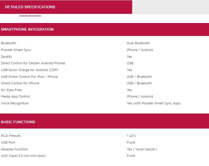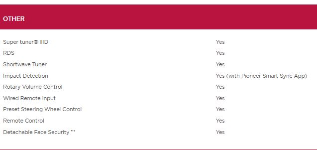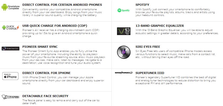 - قابلیت استفاده از برنامه SMART SINC شرکت پایونیر جهت کنترل تنظیمات و موزیک ها از روی گوشی موبایل