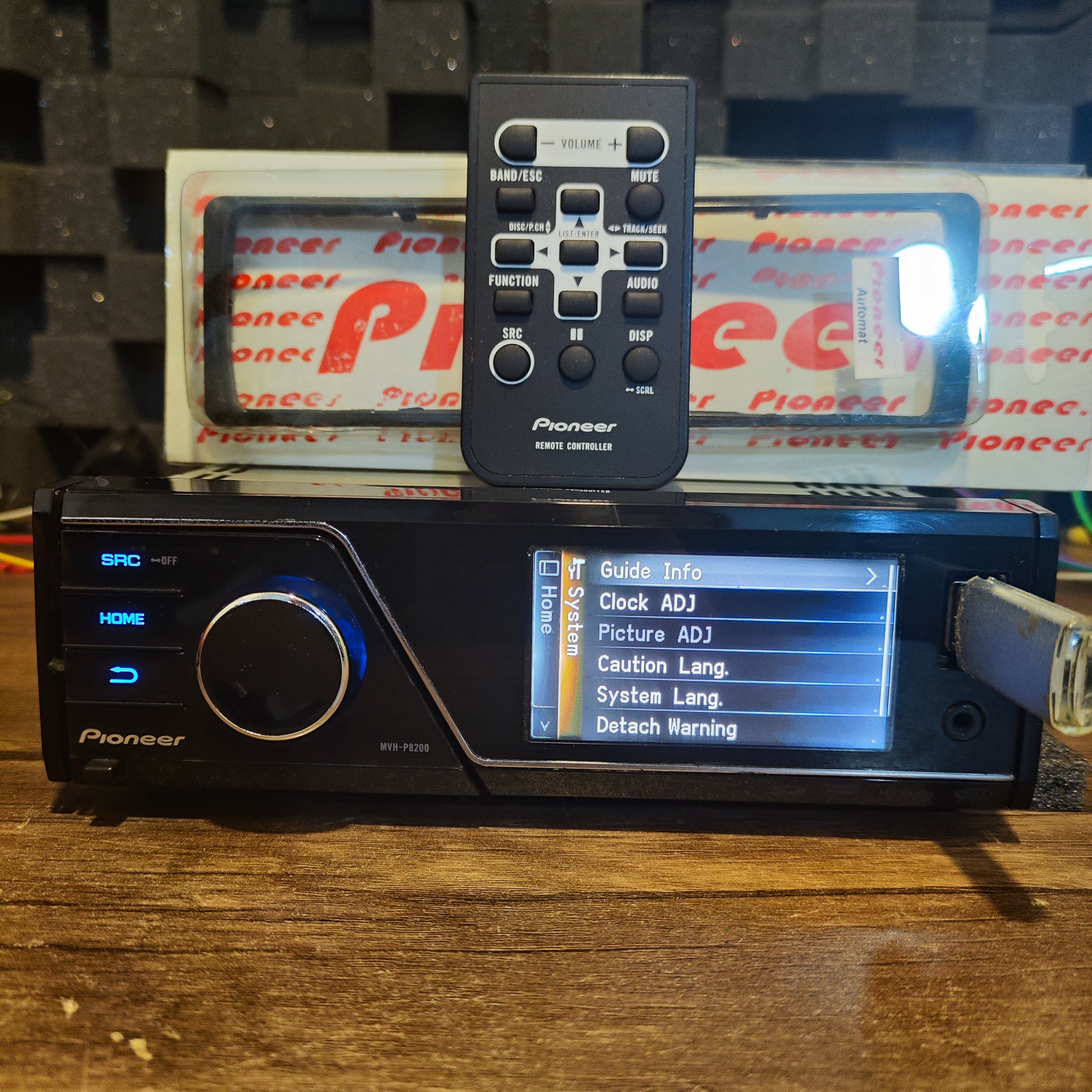 Wireless Remote Control: The MVH-P8200 comes with an IR wireless remote control (CXE2758). The remote allows you to control the volume, switch between sources, pause the CD, change the display, and adjust the audio. The mute button allows you to quickly lower the volume by about 90% (function that cannot be performed from the front panel).