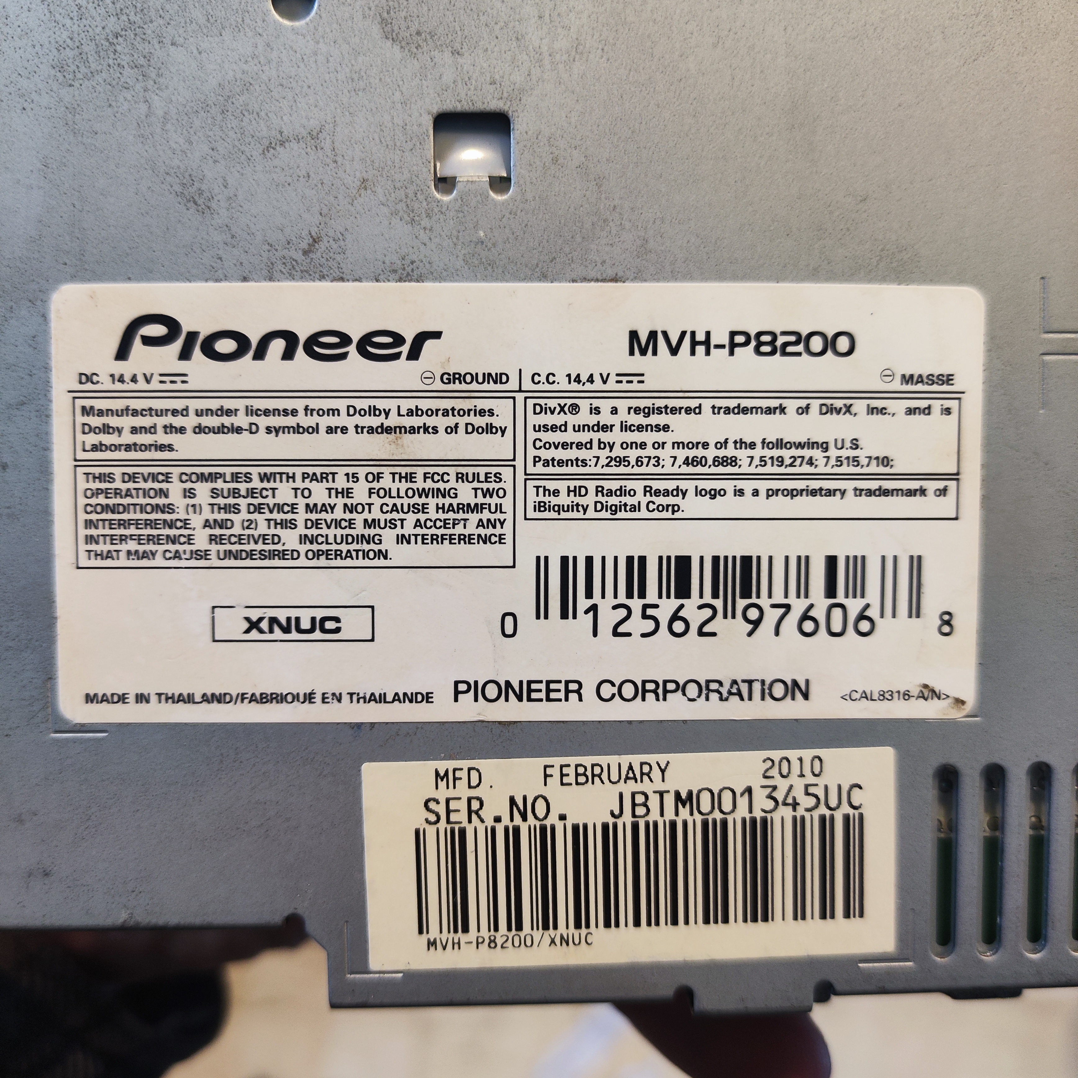 DivX/DivX VOD Video Files: The Pioneer multimedia headunit supports the playback of DivX (.avi/.divx) video files stored on USB device or SD memory card. The MVH-P8200 will recognize DivX Home Theater versions -3, 4, 5.2, and 6; as well as DivX VOD (video on demand). The recommended DivX file size is 2Mbps or less with a transmission rate of 2GB or less.