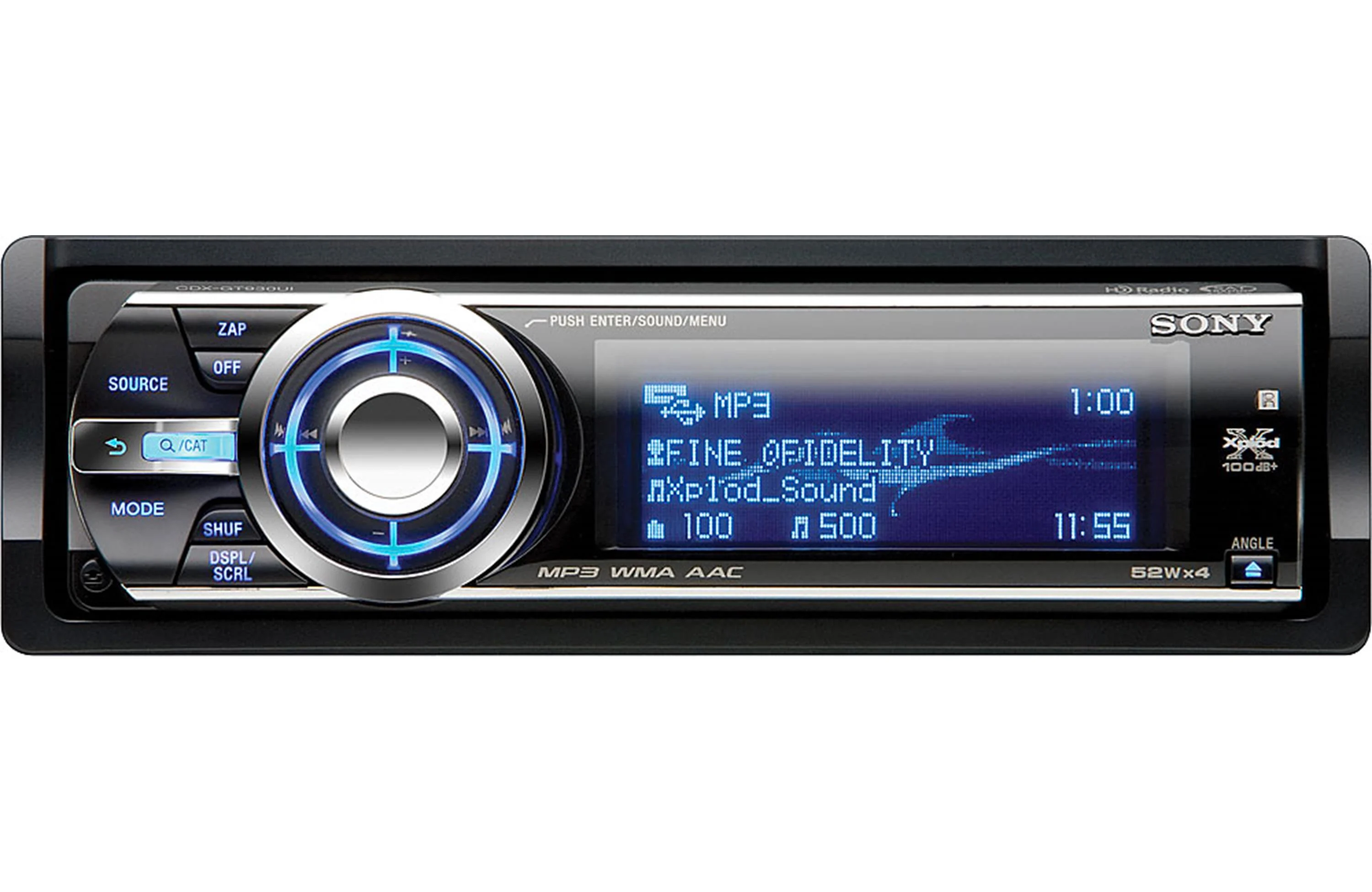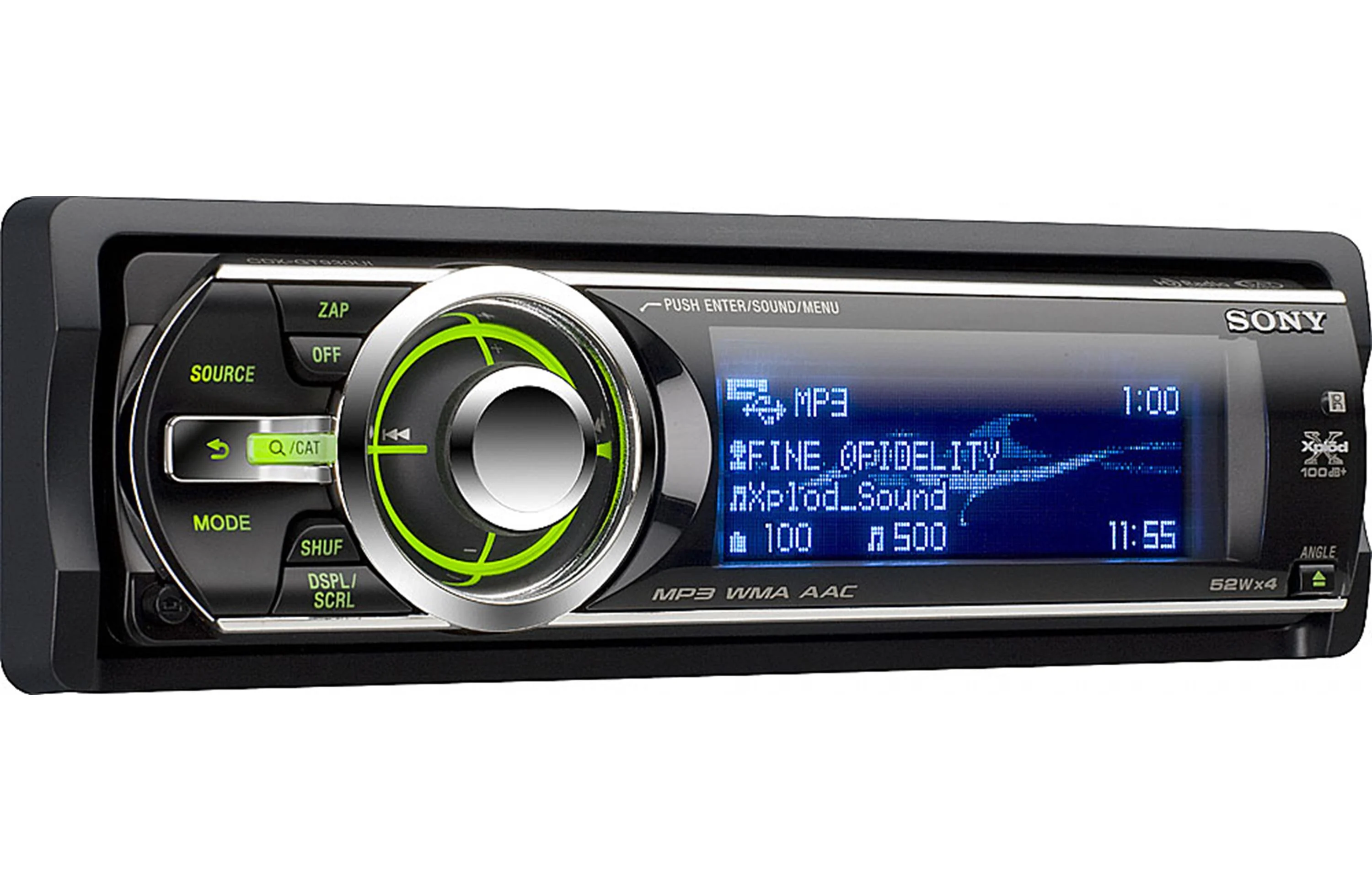 The Sony CDX-GT930Ui CD receiver offers quick, convenient access to all your digital music files, so you can get to your music fast. Connect your iPod® to the rear USB input for direct iPod control — you'll be able to navigate through your playlists with the Sony's controls while the 4-line display gives you detailed track information at a glance. The "rotate and push" button finds songs intuitively so you don't have to push multiple buttons while you're driving. Or, you can switch control over to your passengers so they can select tunes with the iPod's controls.