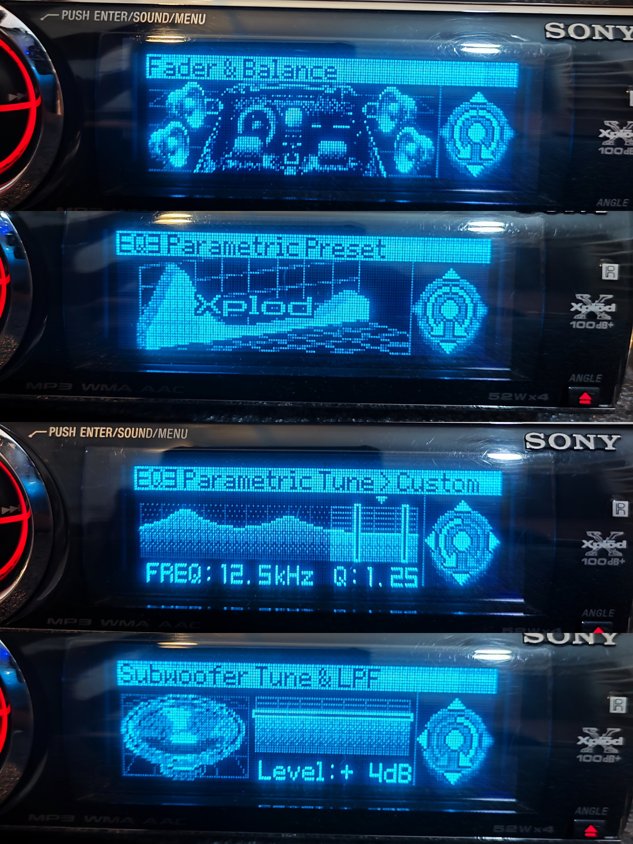 پخش استوک(کارکرده) حرفه ای سونی، 6 خروجی 4 ولت، دمو دار، سه رنگ کلید، دک صوتی 24بیت، سیگنال به نویز 120 دیبی,HPF, LPF مجزا برای استیجها، فلش وaux از پشت دستگاه، بلوتوث موزیک